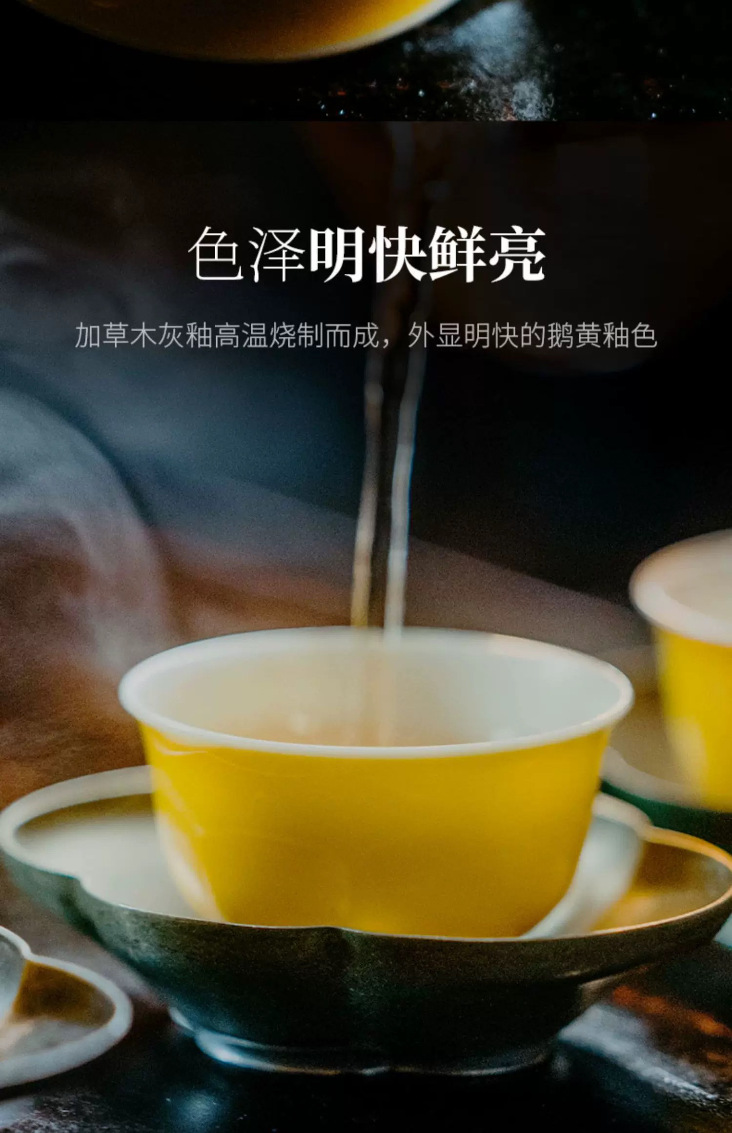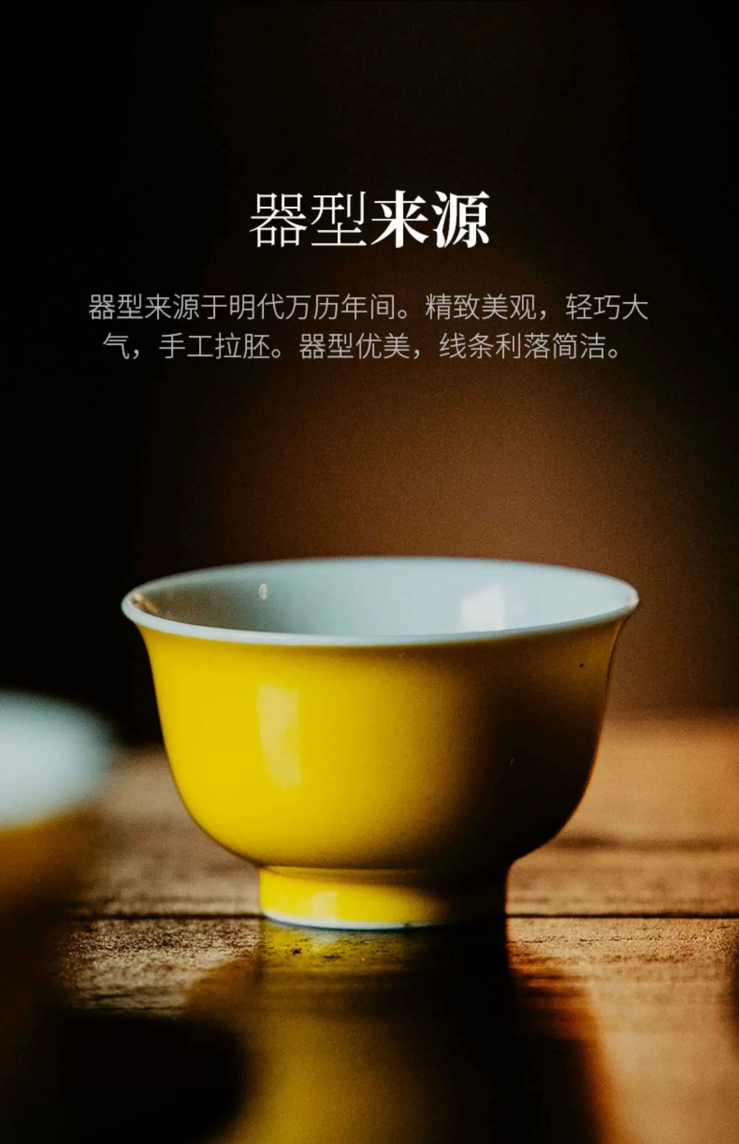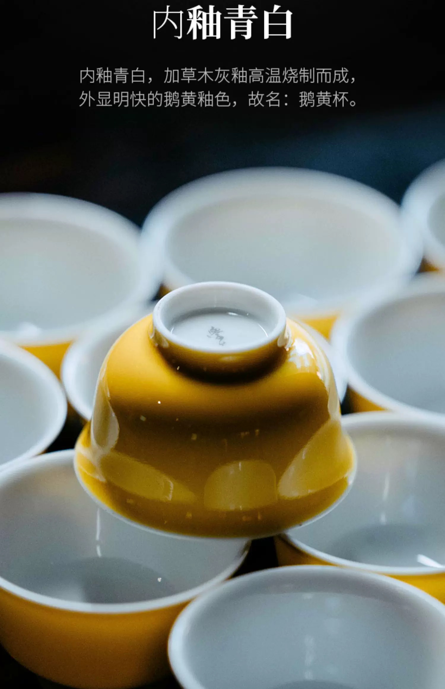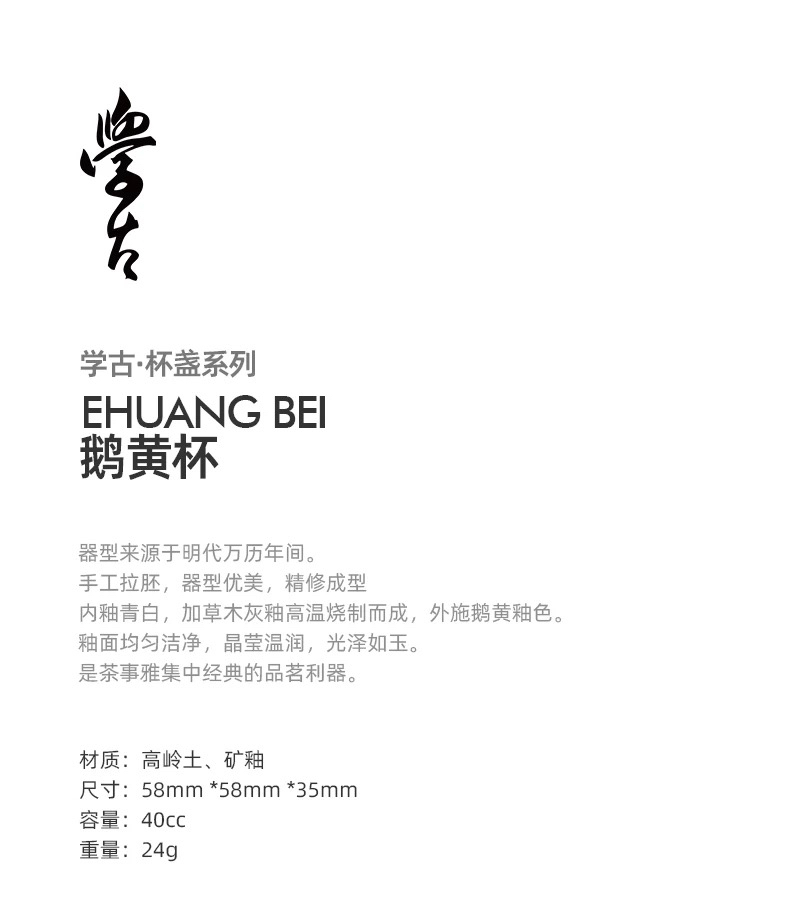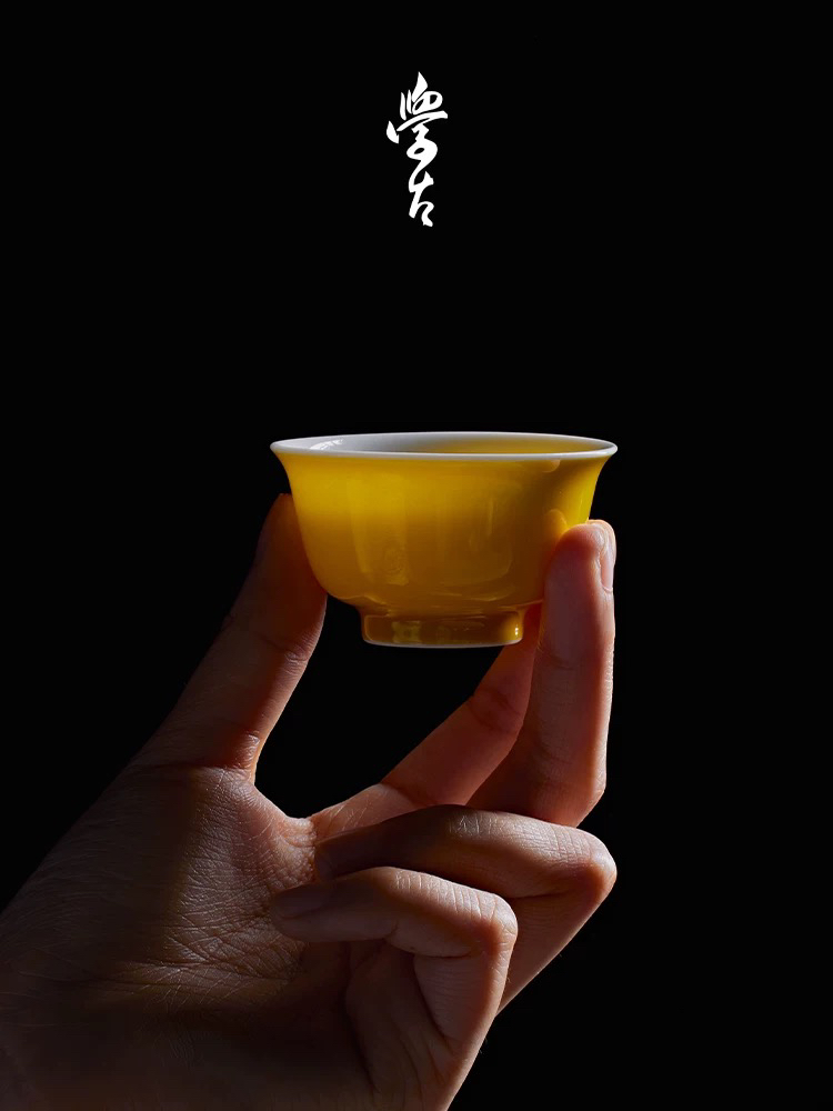 学古|鹅黄杯全手工单色釉明代阔口景德镇高温品茗茶杯6只礼盒40ml