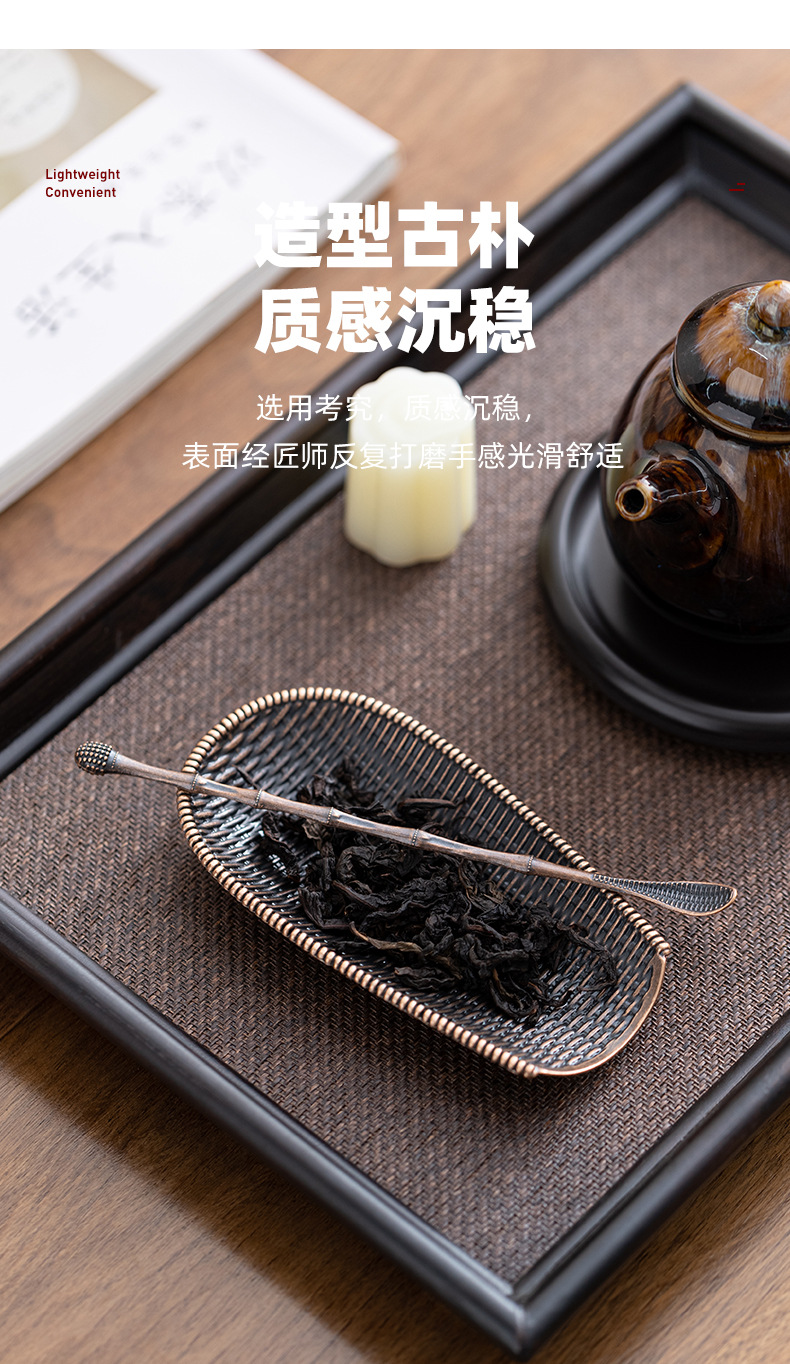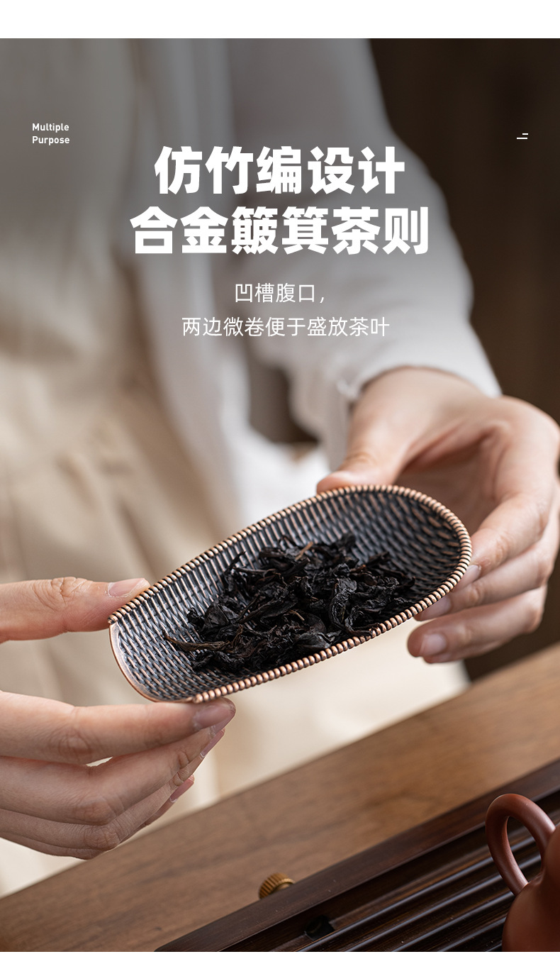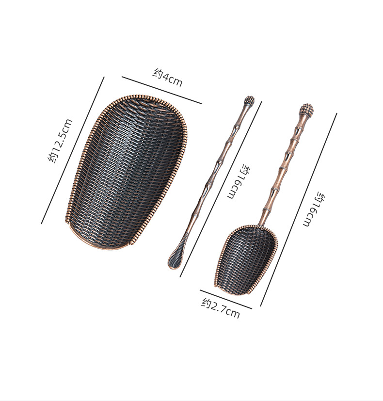 簸箕茶勺茶则竹编纹茶道配件茶荷创意编织茶匙茶则茶拨茶勺功夫茶具茶道配件
