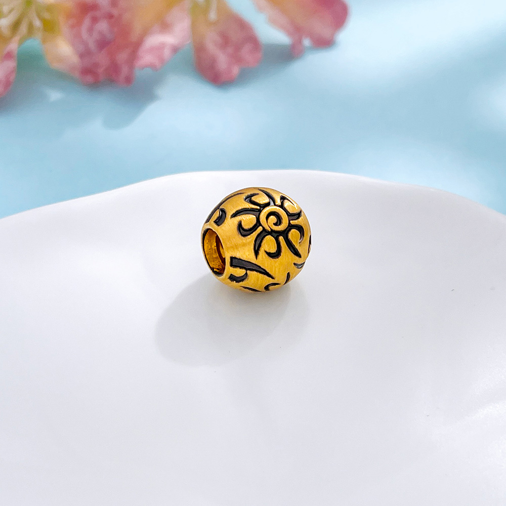 【限时7.5折】【定价黄金】足金 #电黑金 3D硬金电黑金太阳纹转运珠手串配件Diy手串配件(V3DSC00451)(预售产品下单后不退款不退货不换货不补差