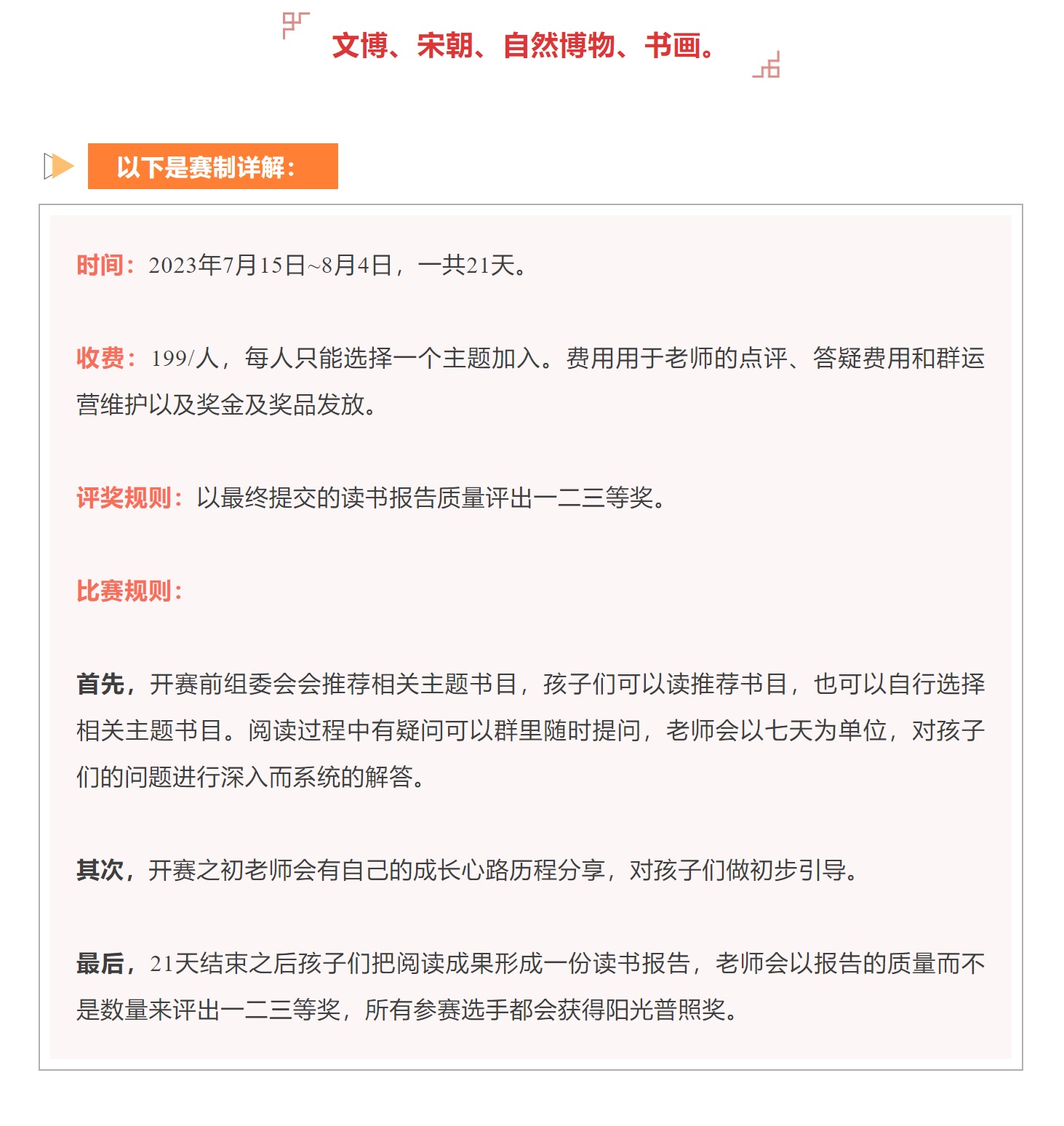 赛制二:主题阅读,共分四个主题:文博,宋朝,自然博物,书画。