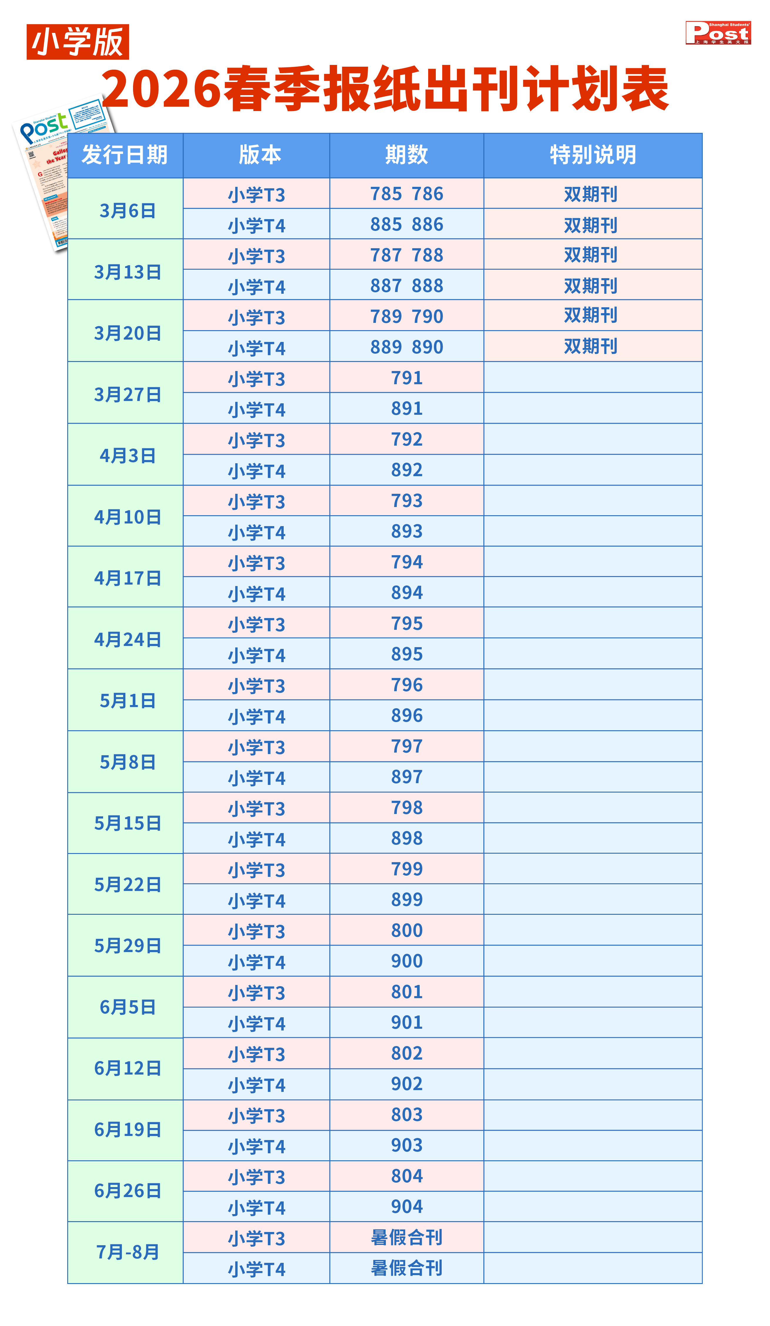 小学版上海学生英文报26年3月-8月纸质报刊(20期+暑假合刊)含运费