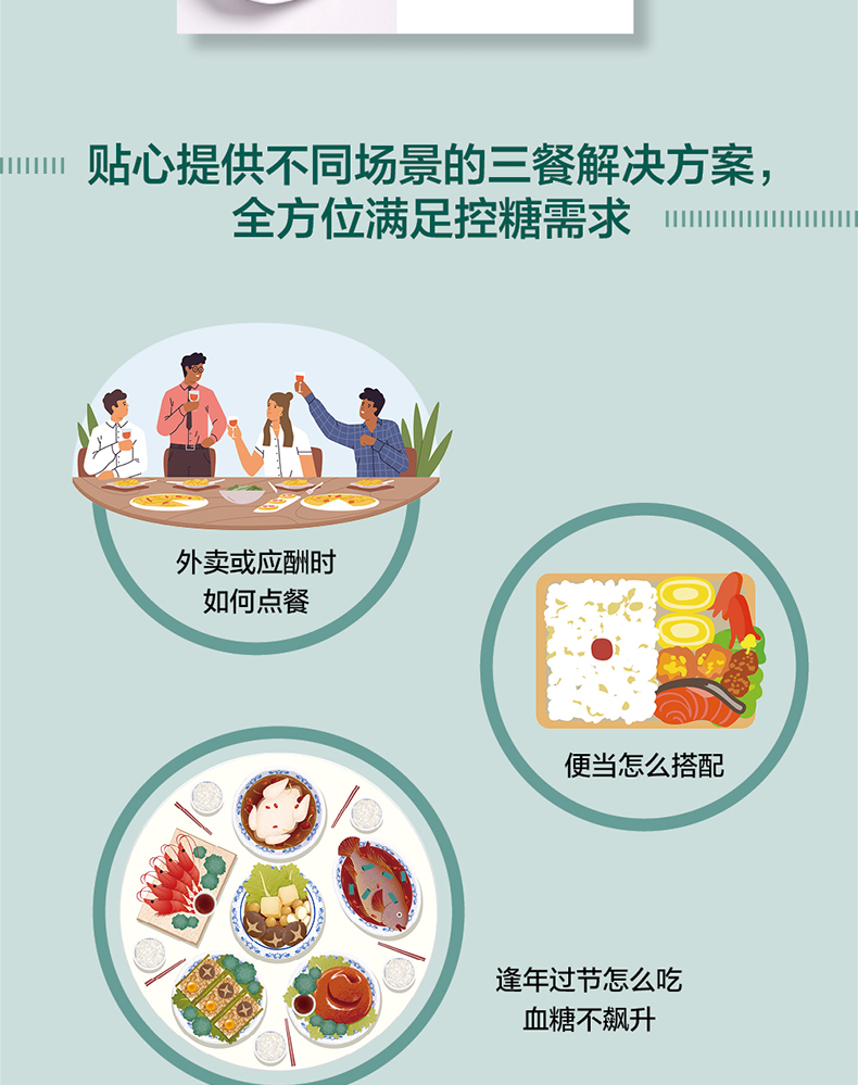 3、特殊人群、特殊场合个性化控血糖攻略,血糖不蹿高、预防并发症。