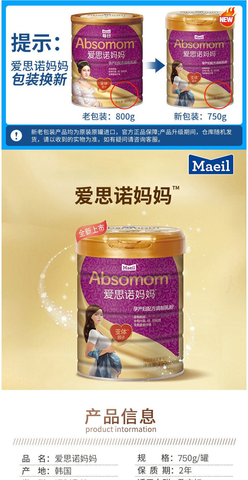 【孕妇奶粉】Maeil每日韩国进爱思诺妈妈孕妇奶粉怀孕期哺乳期奶粉750g罐装