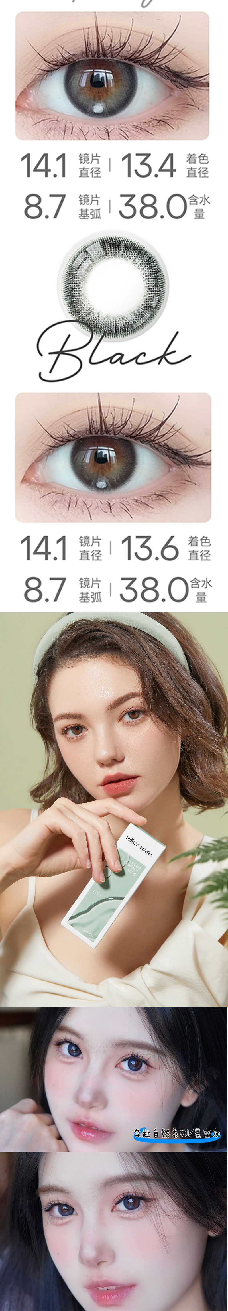 【日抛】Holy Nara 奔赴自然 黑/灰 直径:14.1mm 含水量38%(日抛10片/盒 不同度数请拍两盒)