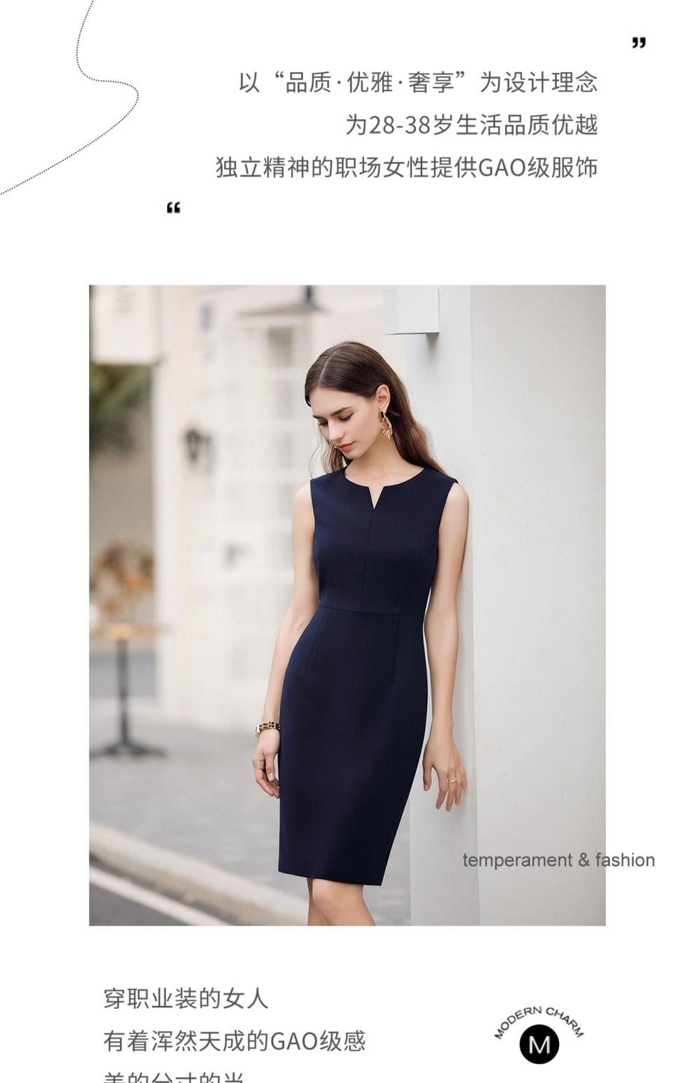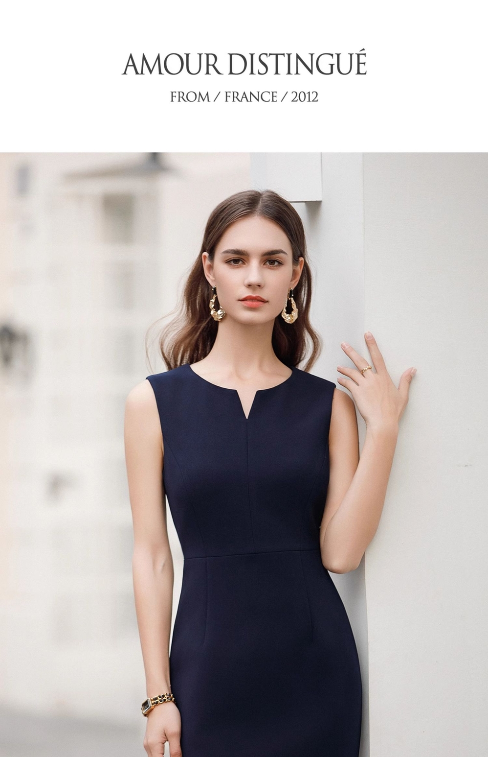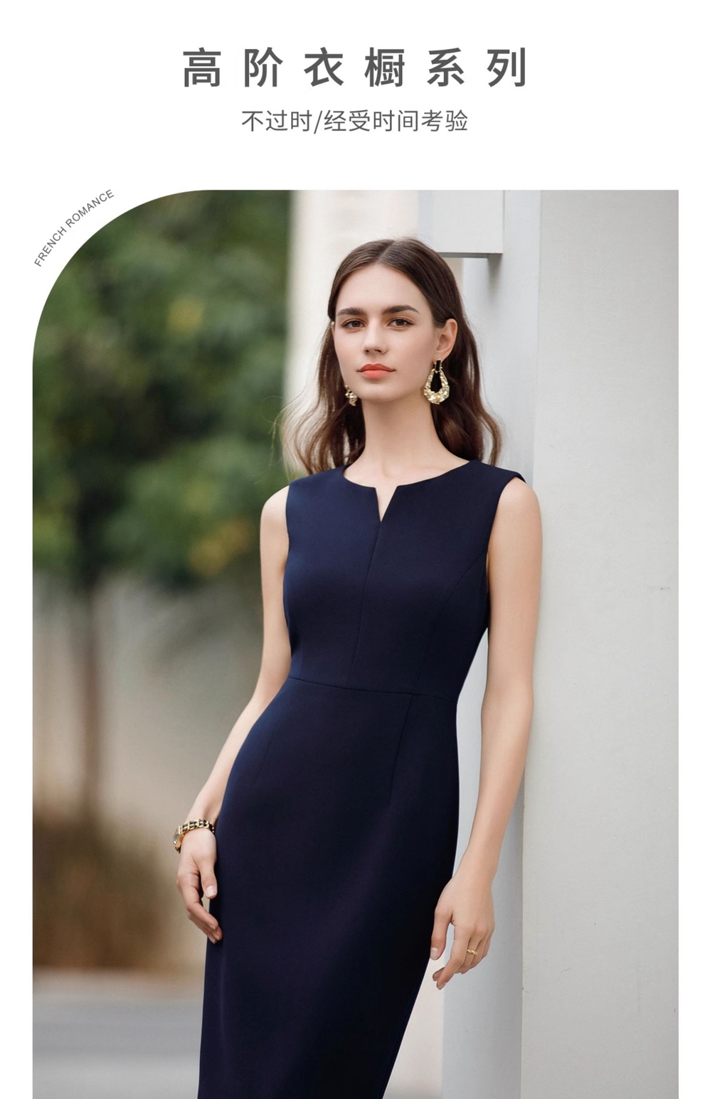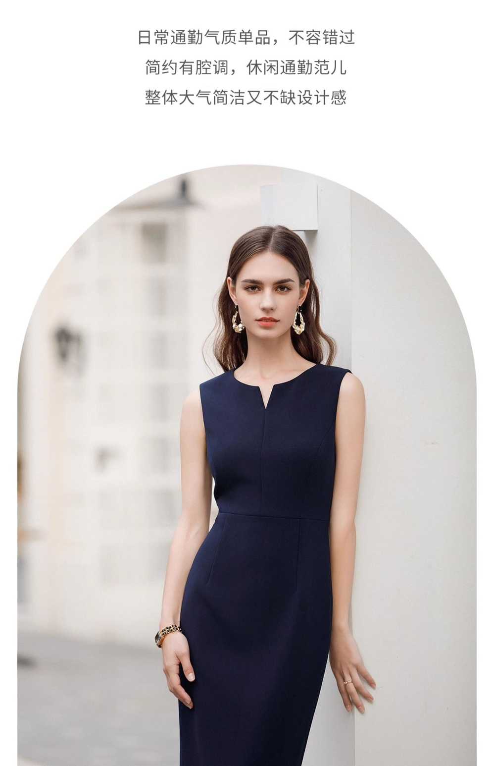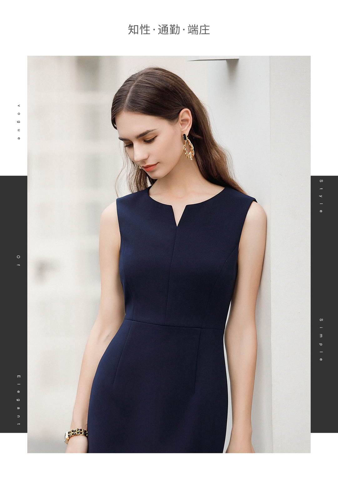 IWY/无袖百搭西装连衣裙女藏青色无袖高级设计感修身搭配西装单穿Q1071