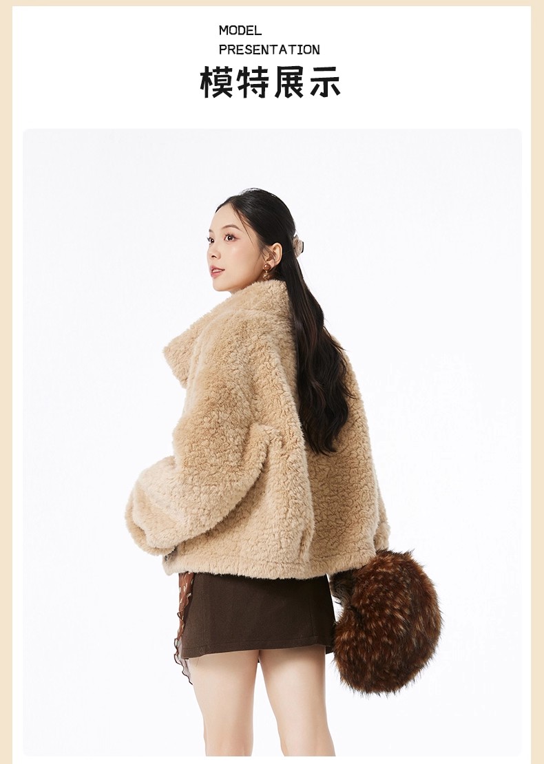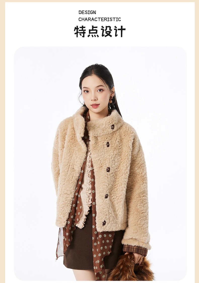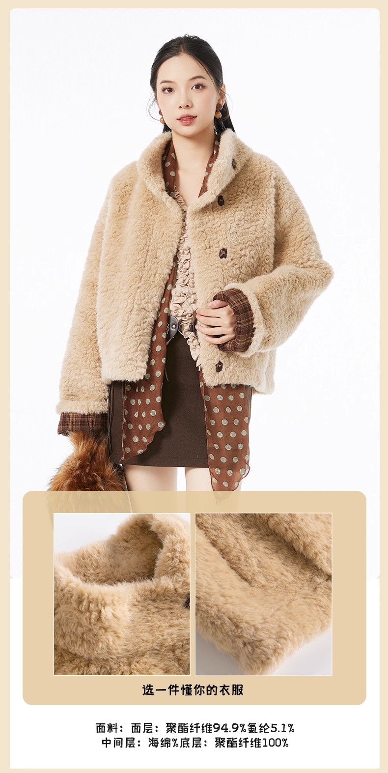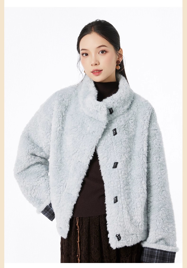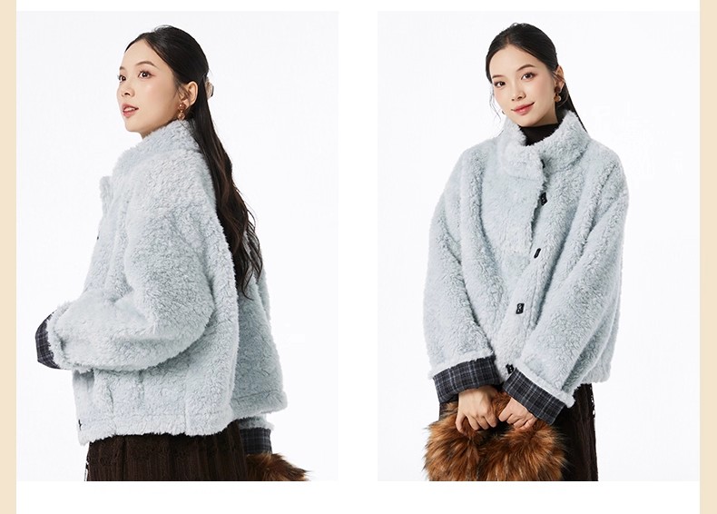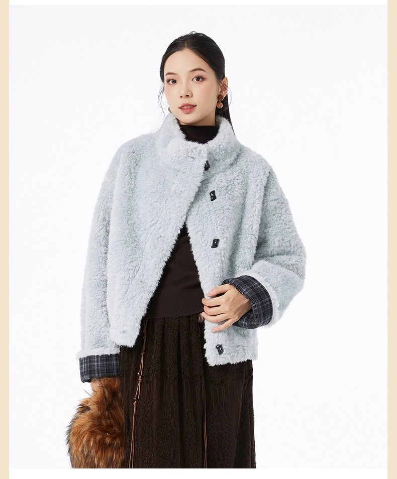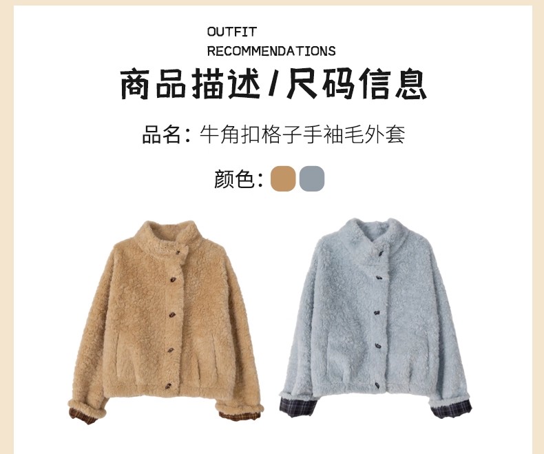 【门店同款】ENJOY冬季“游牧漫寻”牛角扣格子手袖毛外套 167448376