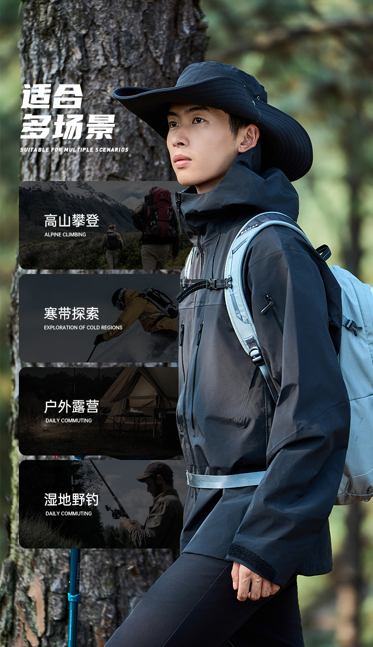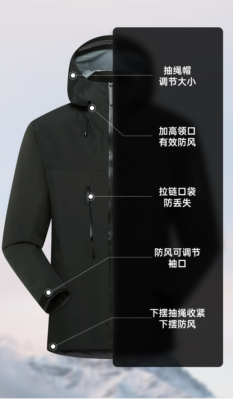 【实付满399送保温杯】【户外多口袋连帽硬壳冲锋衣】户外防水防暴雨登上服外套 男女同款休闲连帽上衣FT403