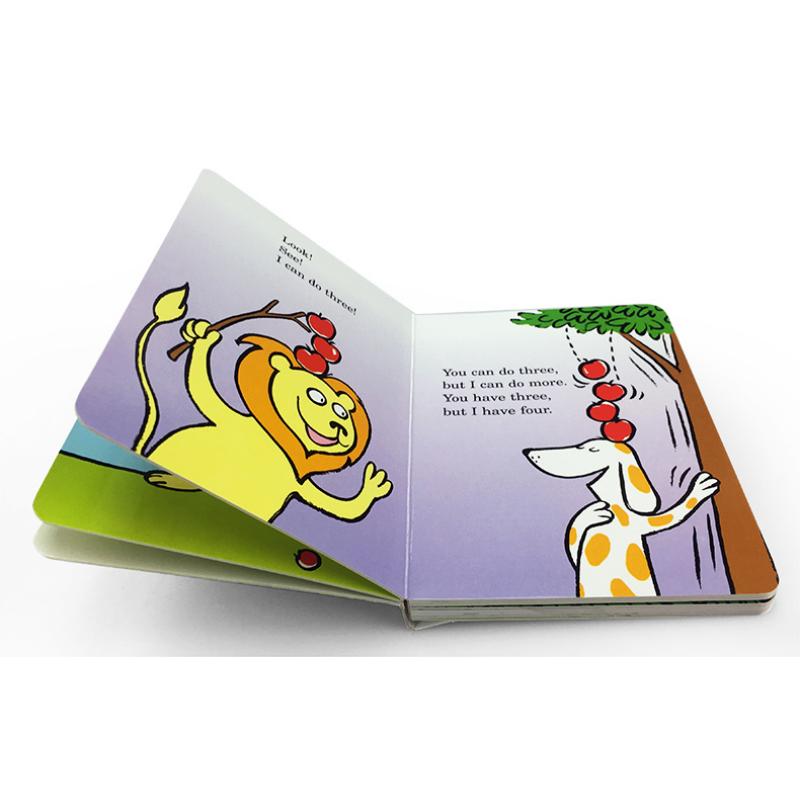 故事围绕着顶苹果这个游戏展开了,顶苹果也是一项很可爱的游戏,到底谁更厉害呢,谁能顶起更多的苹果呢?让我们一起到绘本中去看看吧!小狮子是第一个开始顶苹果的是小狮子,顶起了一个苹果之后它觉得很轻松,于是开始尝试顶2个,顶3个。。。这时候小斑点狗顶着3个苹果出现了小狮子的面前,不仅顶苹果,还可以边顶苹果边跳绳呢。
