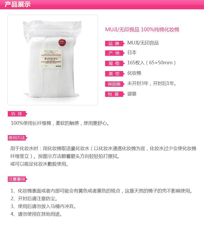 【保税仓】MUJI/无印良品 化妆棉新款 165枚入 商品图0