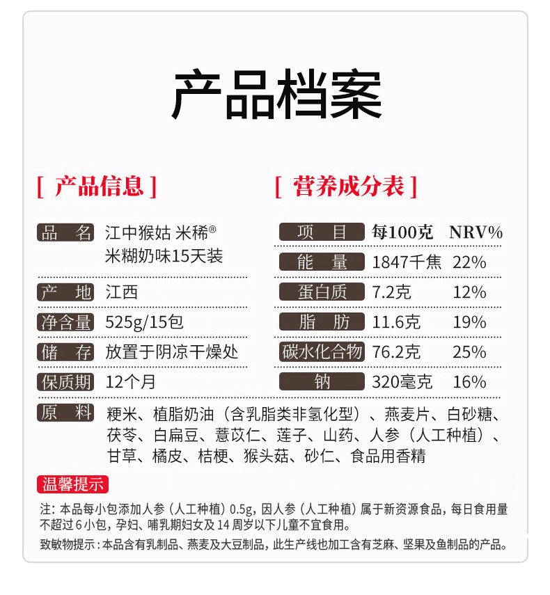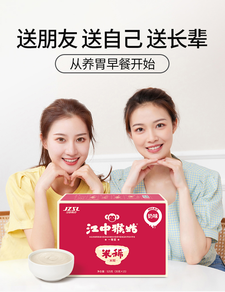 2盒*江中猴姑米稀奶味米糊15天装养胃早餐525g/盒 2026年9月到期