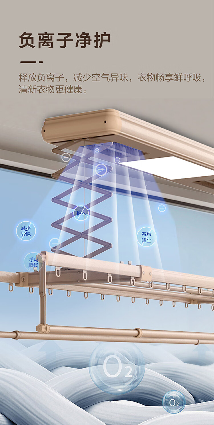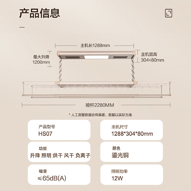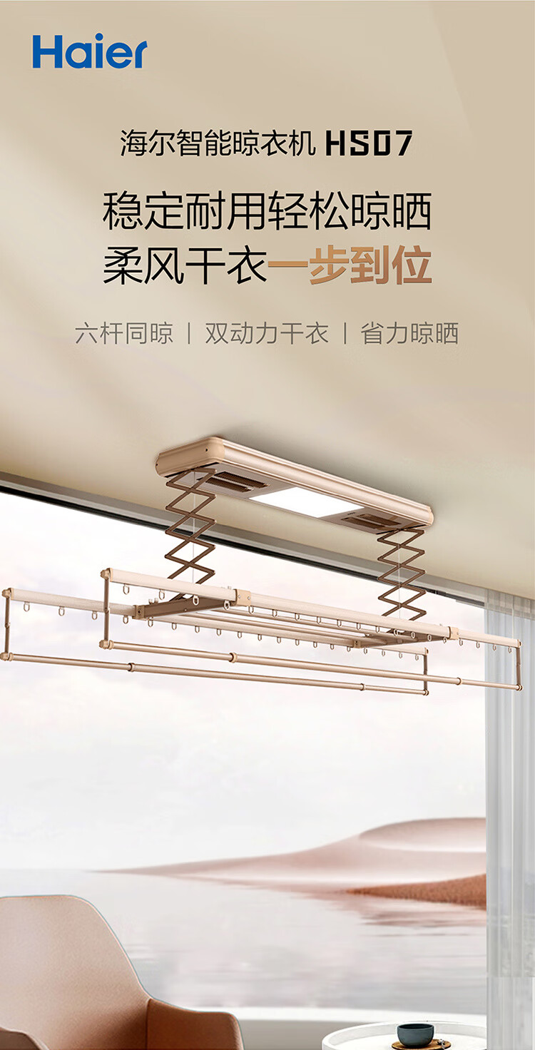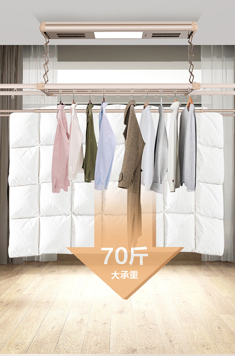海尔(Haier)海尔智能晾衣机阳台多功能晾衣杆照明风干烘干负离子HS07鎏光铜 鎏光铜HS07 【风干烘干】