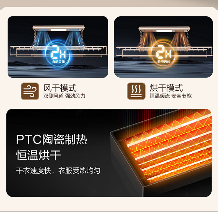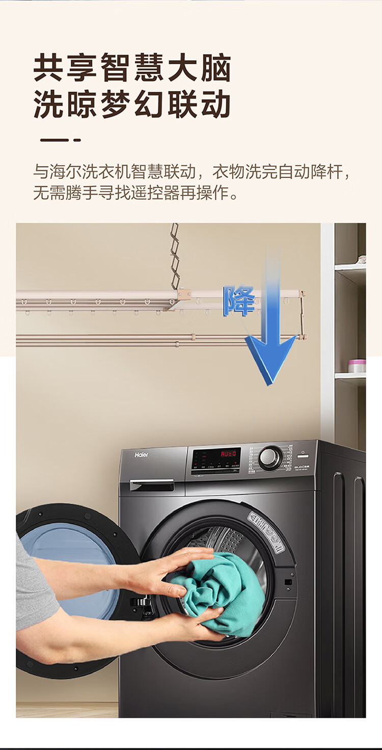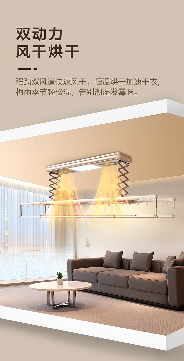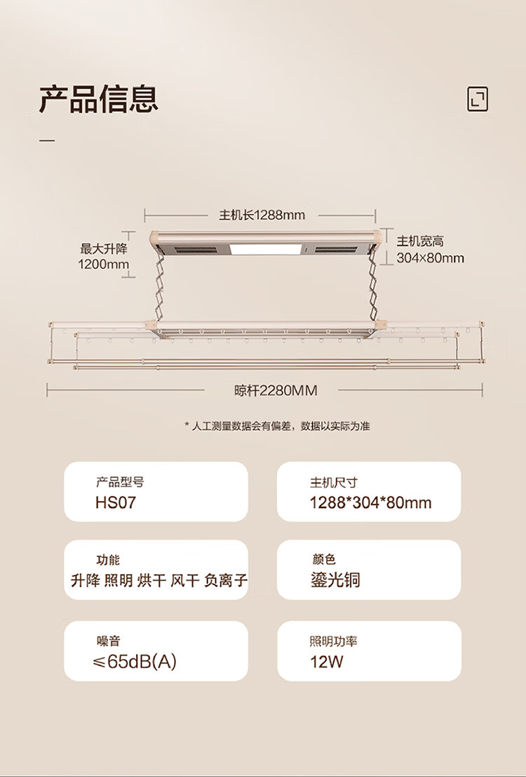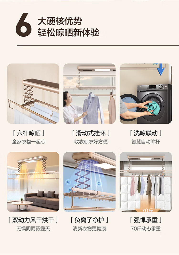 海尔(Haier)海尔智能晾衣机阳台多功能晾衣杆照明风干烘干负离子HS07鎏光铜 鎏光铜HS07 【风干烘干】