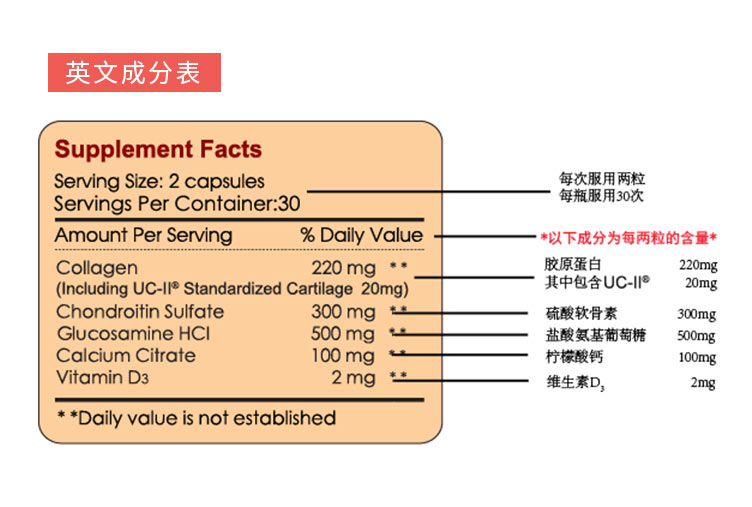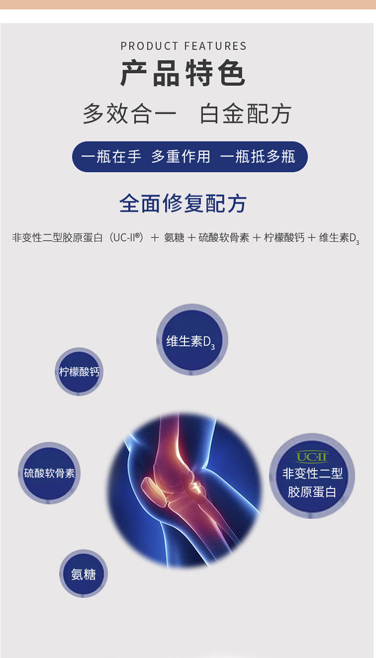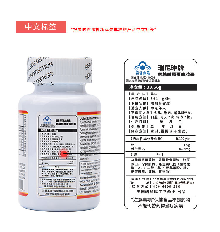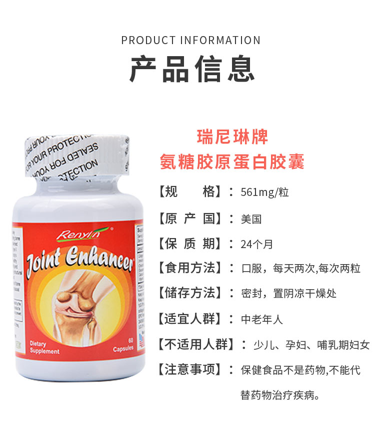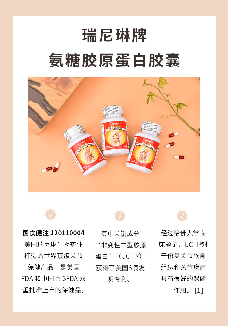 【养护关节】美国进口 瑞尼琳牌氨糖胶原蛋白胶囊 白金配方 多重作用 老年人群 运动人群 关节不适人群