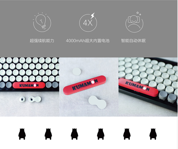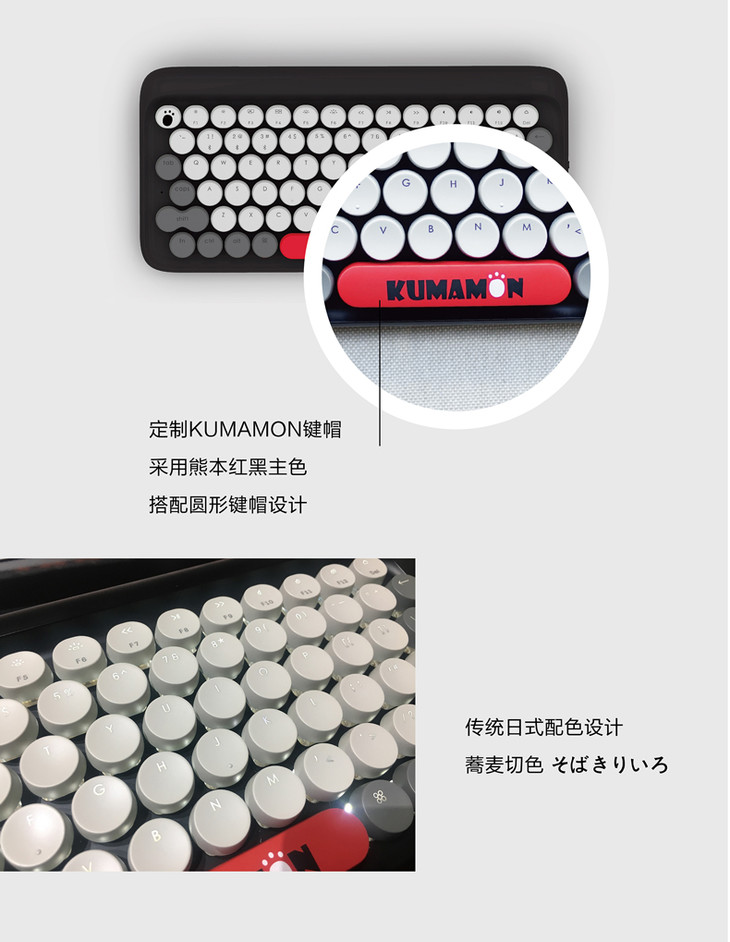LOFREE/洛斐 熊本熊 DOT圆点蓝牙机械键盘 无线复古键盘青轴