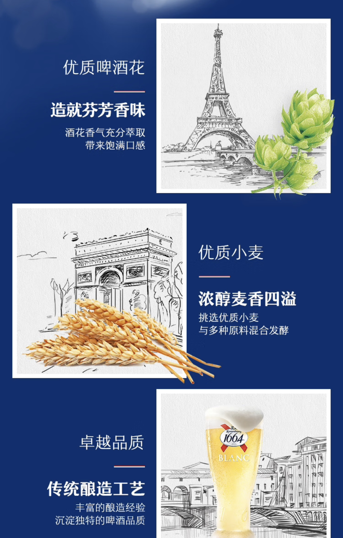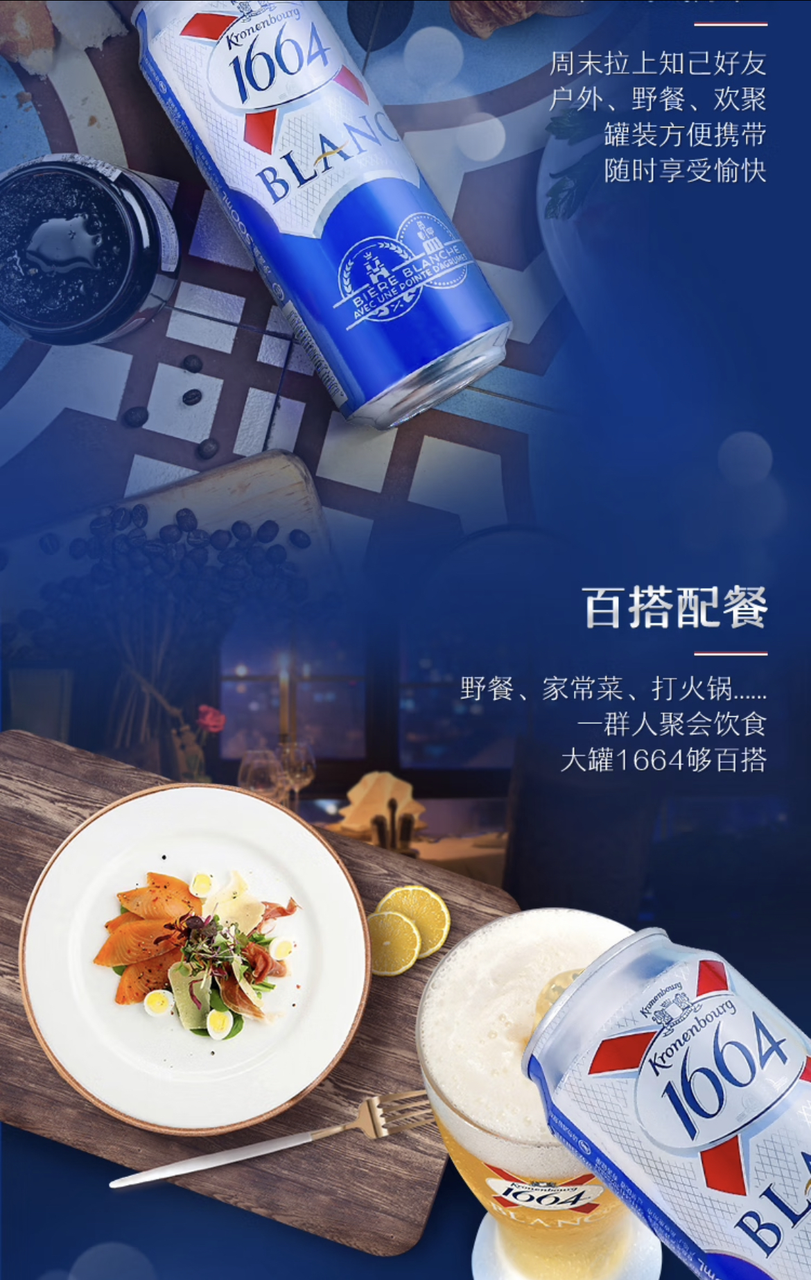 kronenbourg 1664白 啤酒500ml*12听 整箱装(新老包装随机发货)