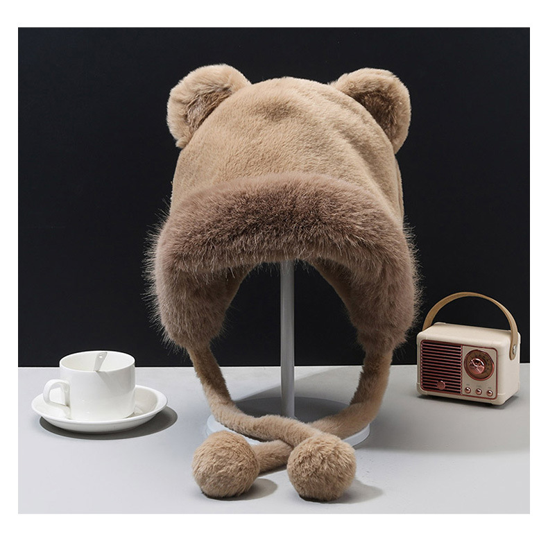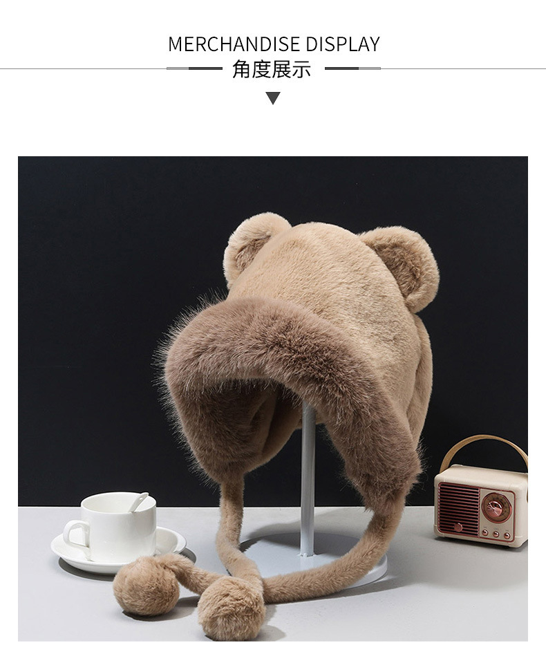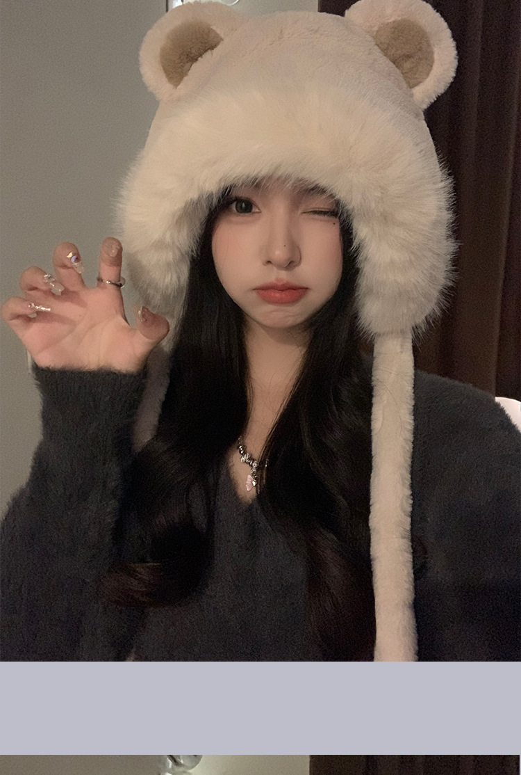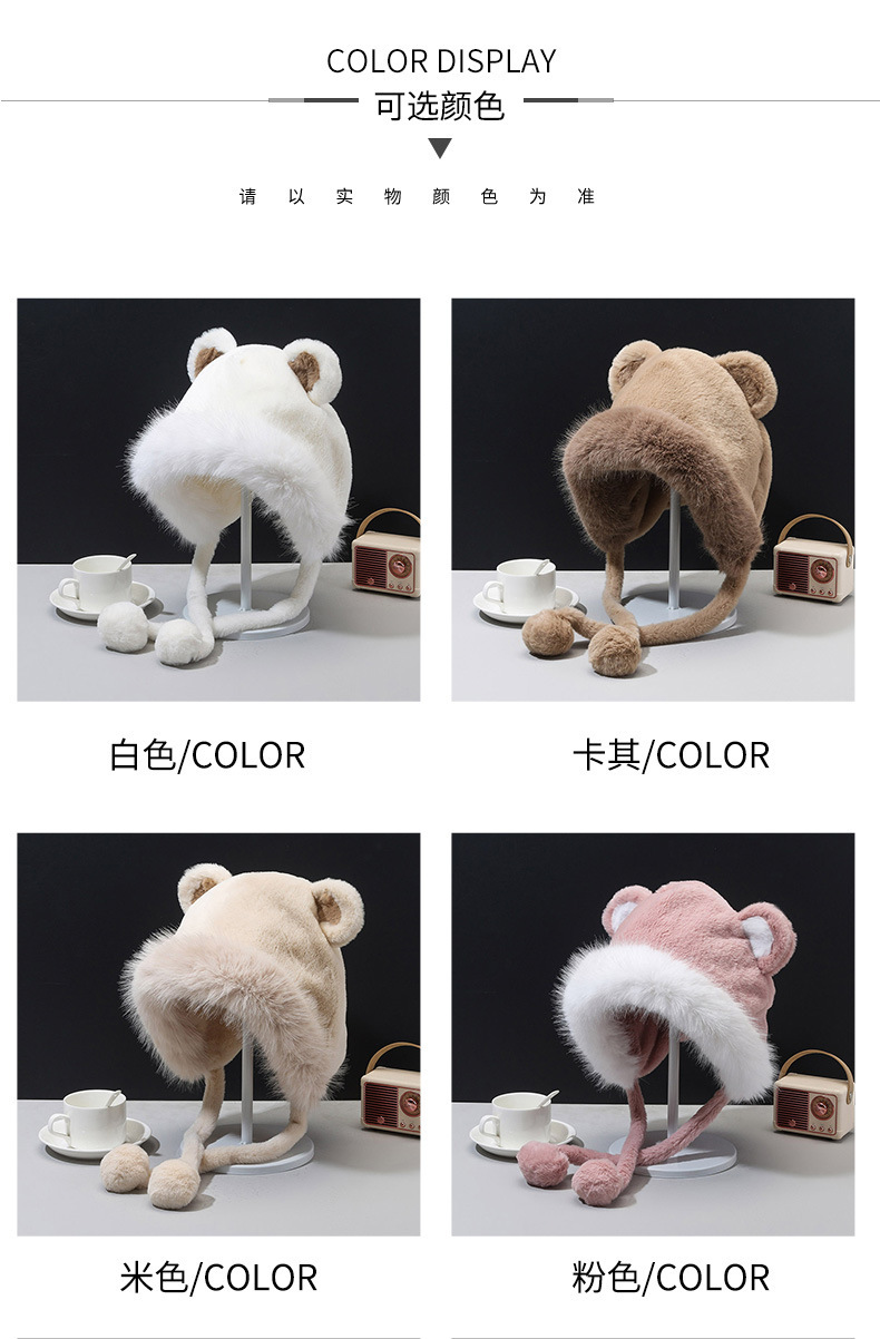 【甜美可爱!白塔显脸小】保暖亲肤,小熊耳朵毛茸茸帽子女冬季百搭护耳包头帽加厚保暖包头雷锋帽。rc
