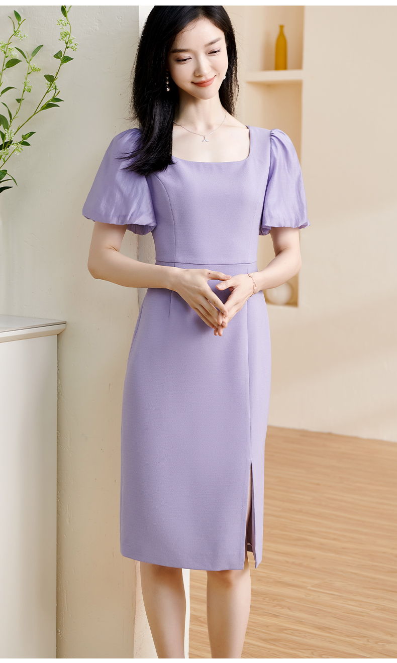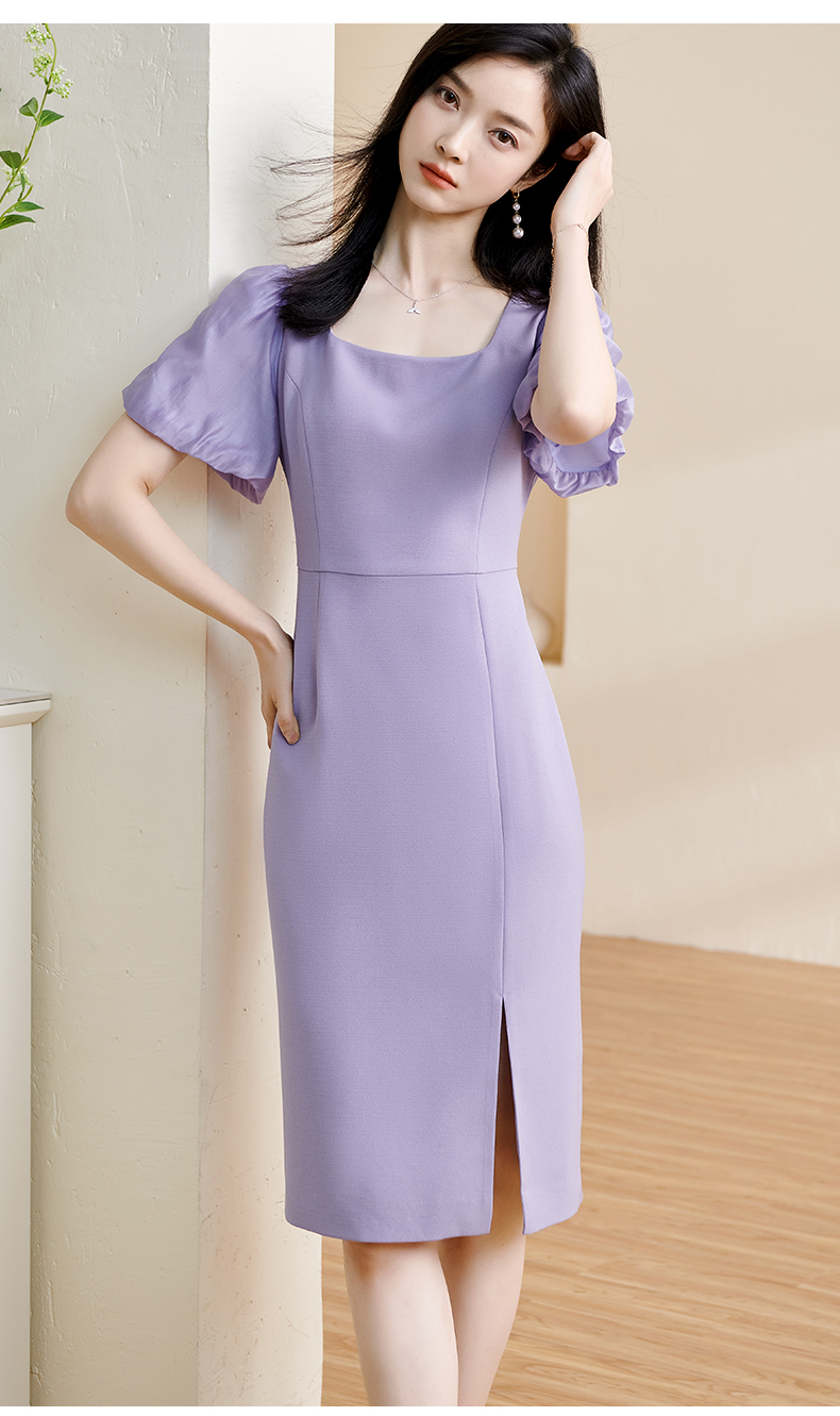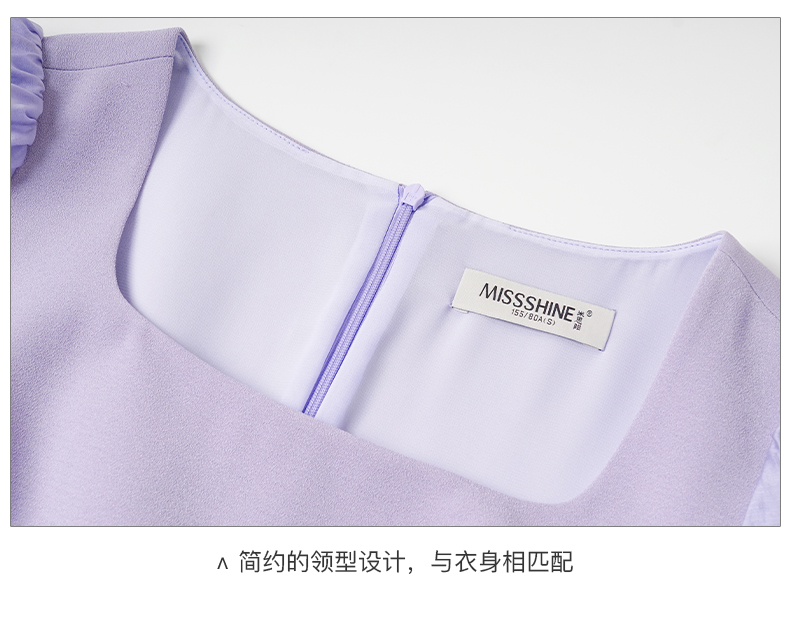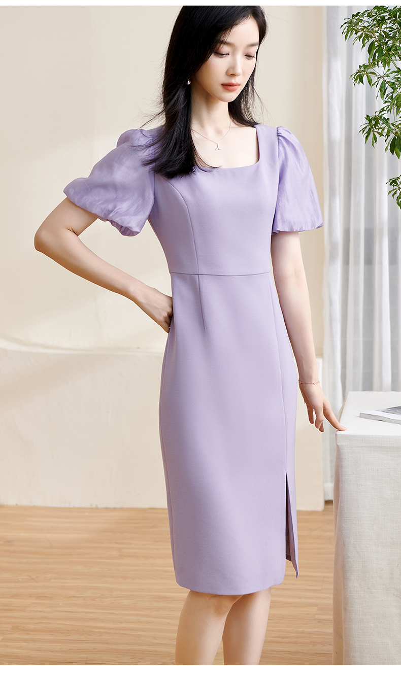 剩S 米思阳2024夏季新款温柔风修身紫色长裙方领法式连衣裙薄款女1234