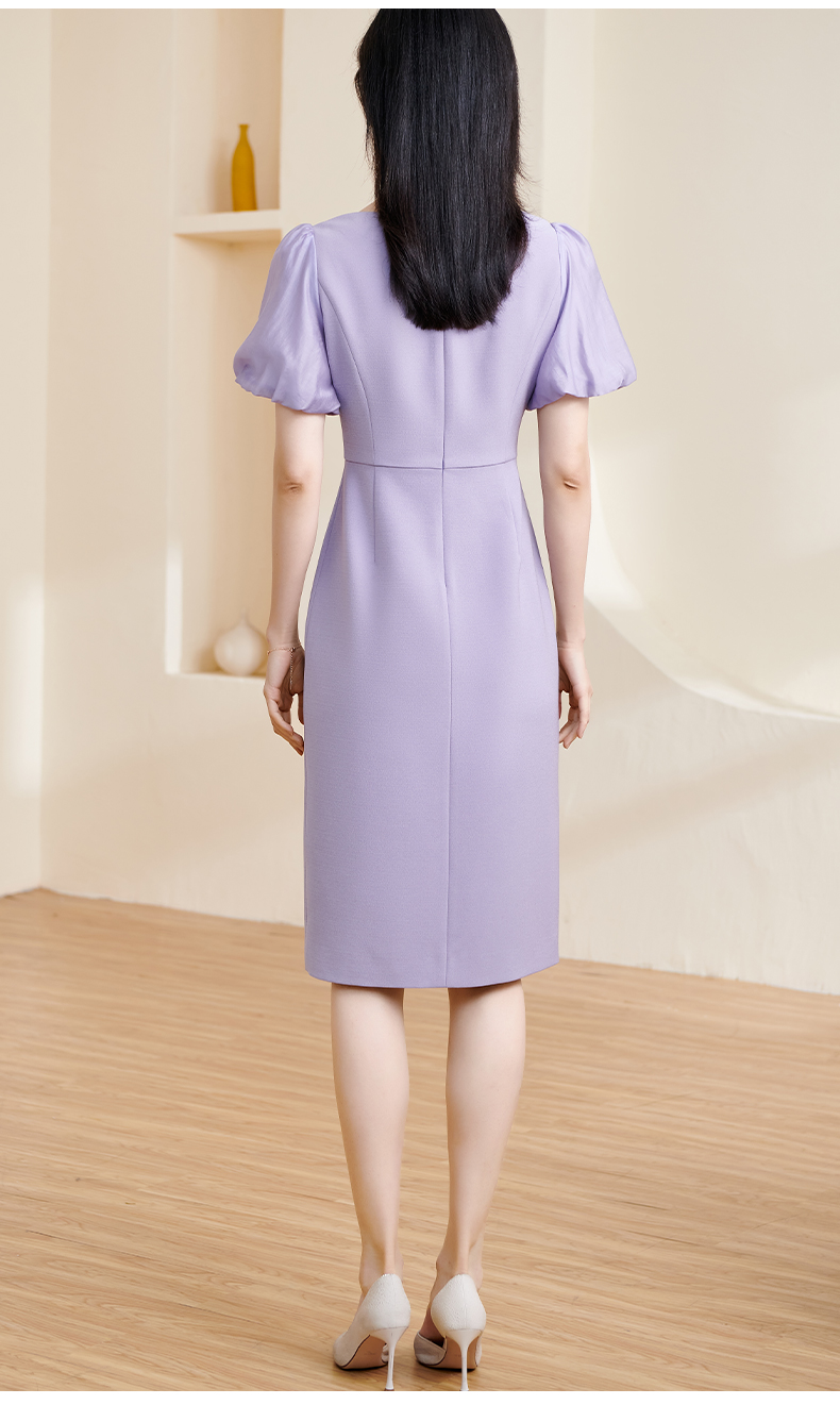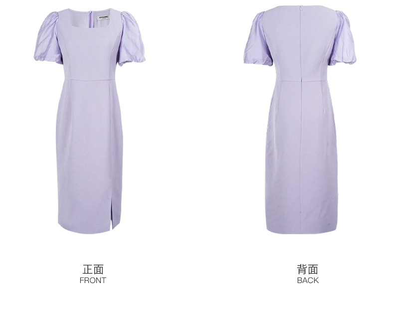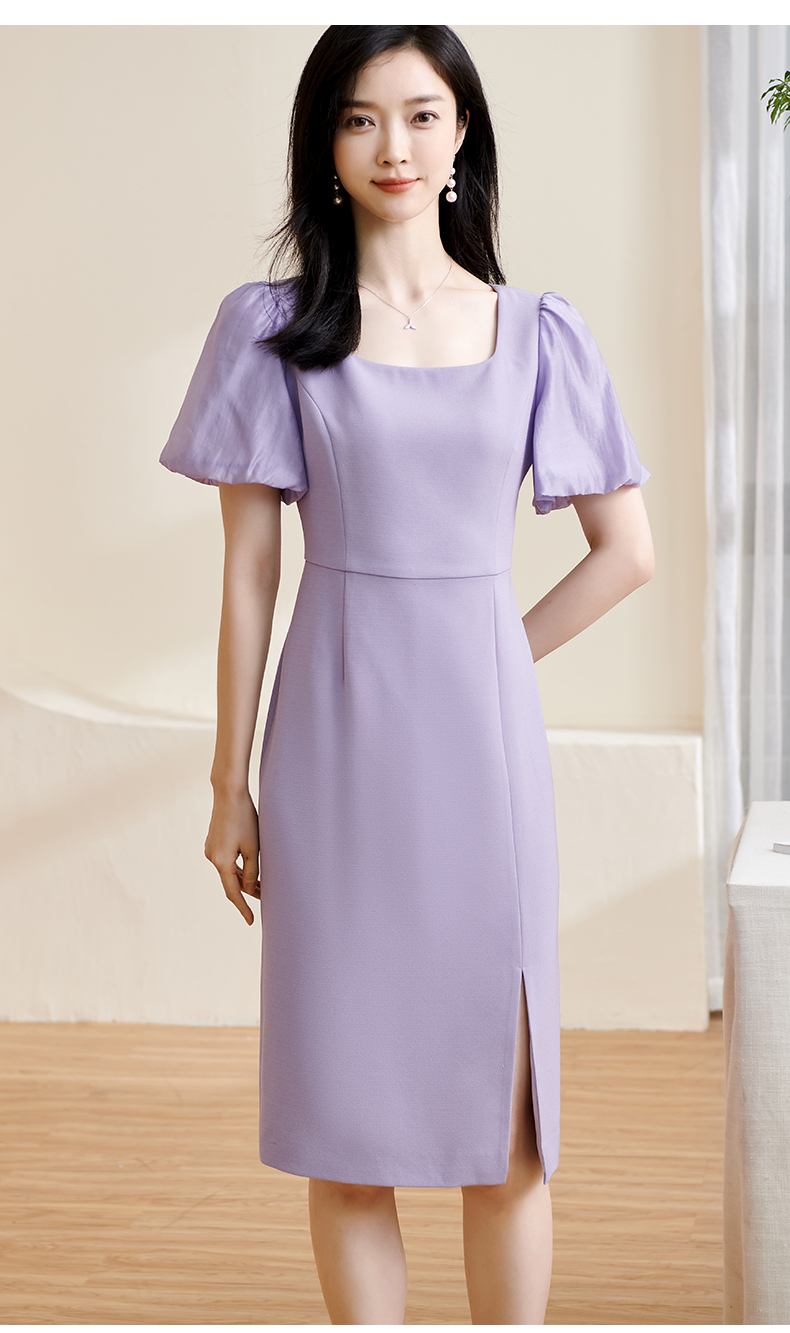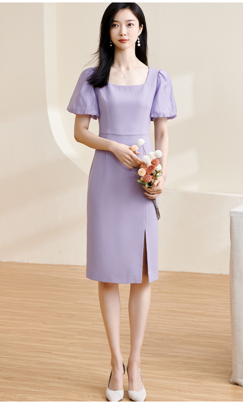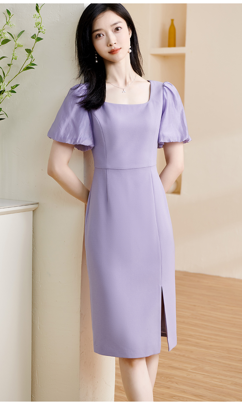 剩S 米思阳2024夏季新款温柔风修身紫色长裙方领法式连衣裙薄款女1234