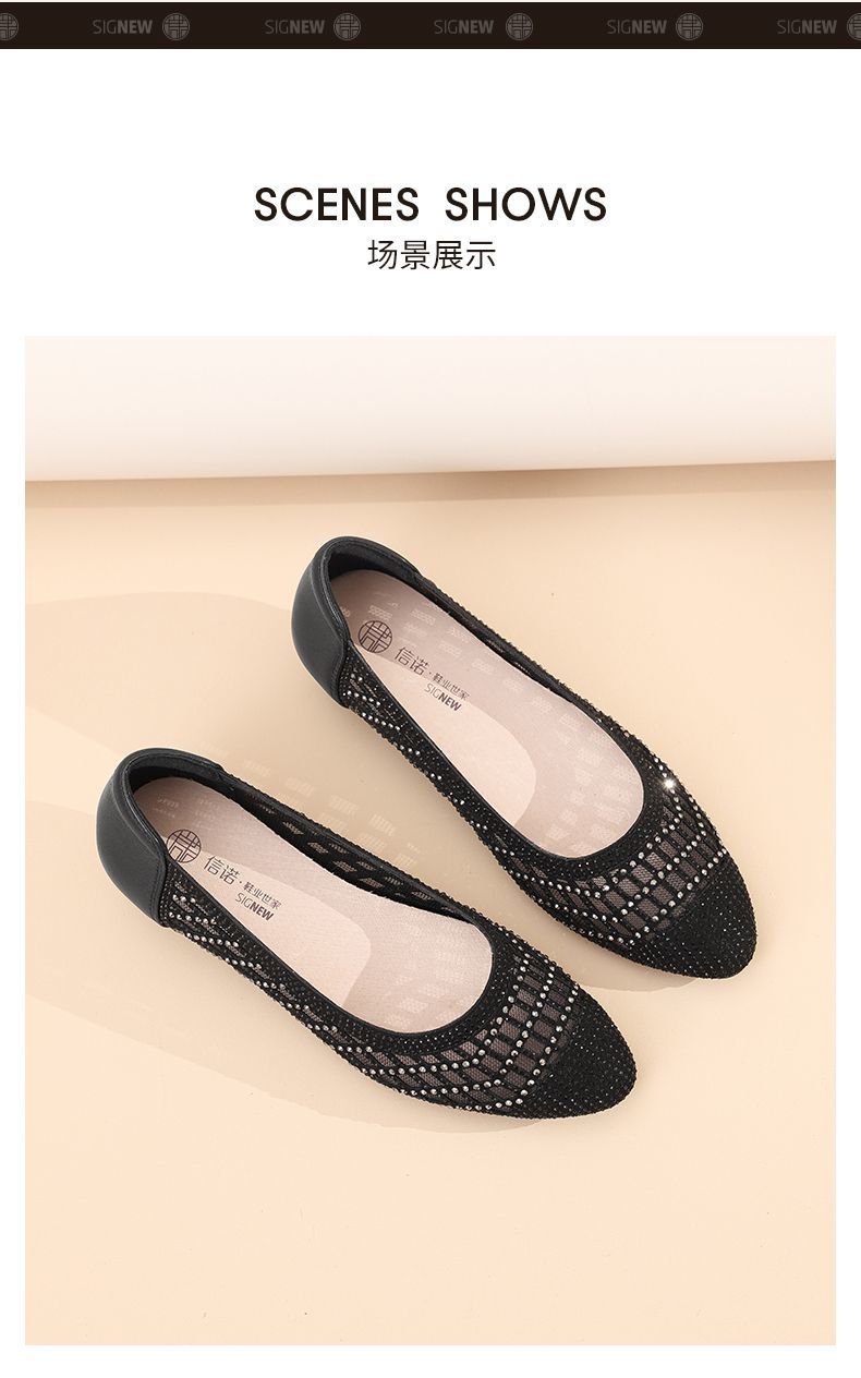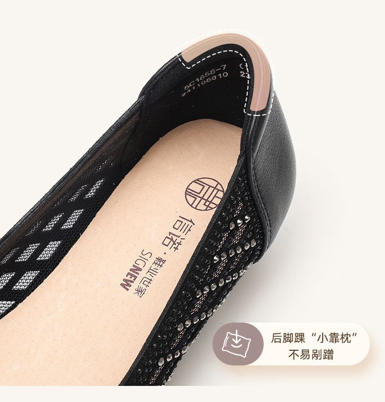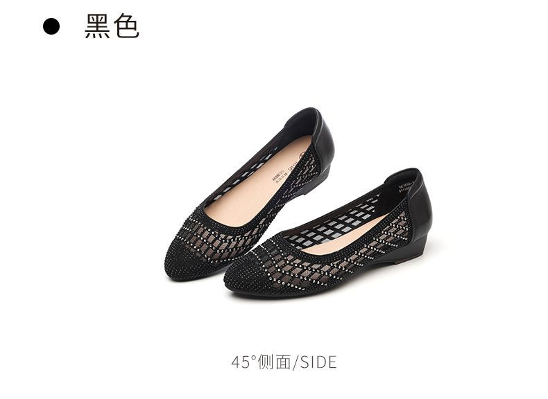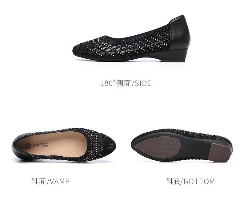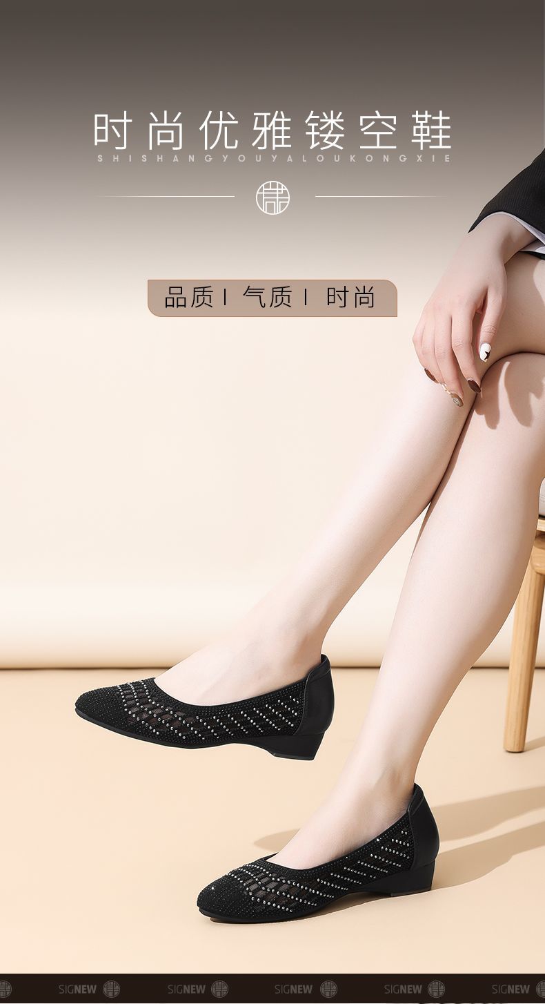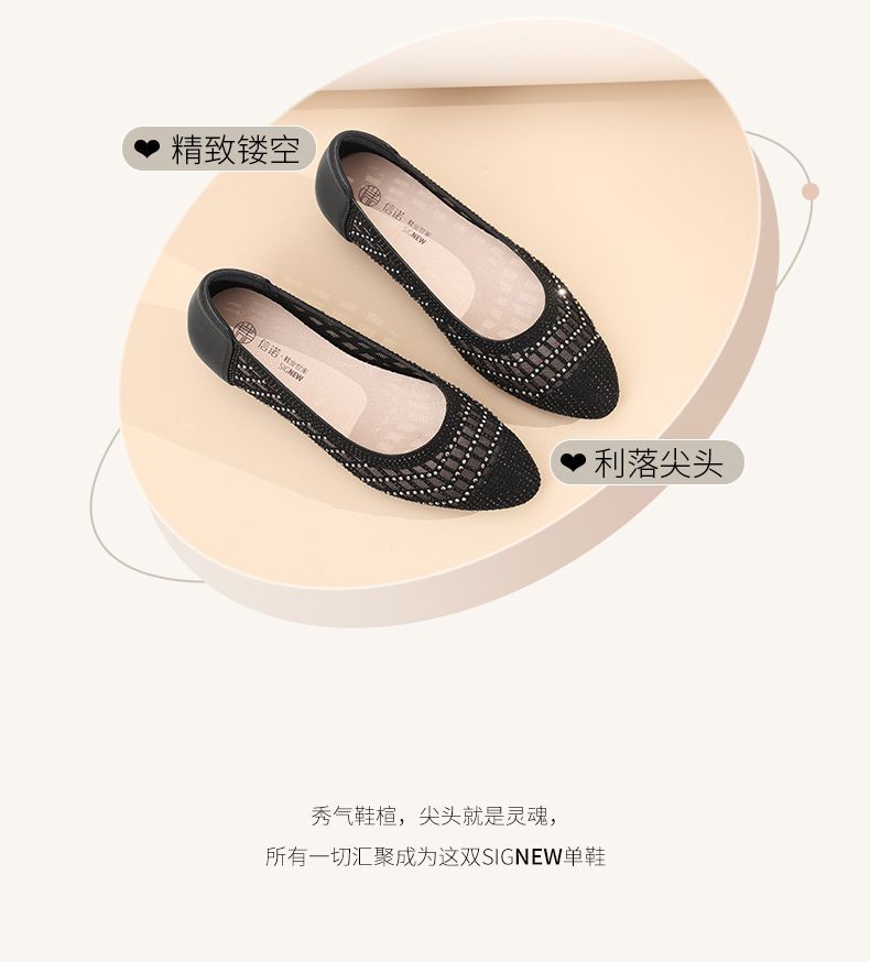信诺真皮2025春夏新镂空女凉鞋低跟软底舒适轻便网纱浅口妈妈单鞋5C1658-7