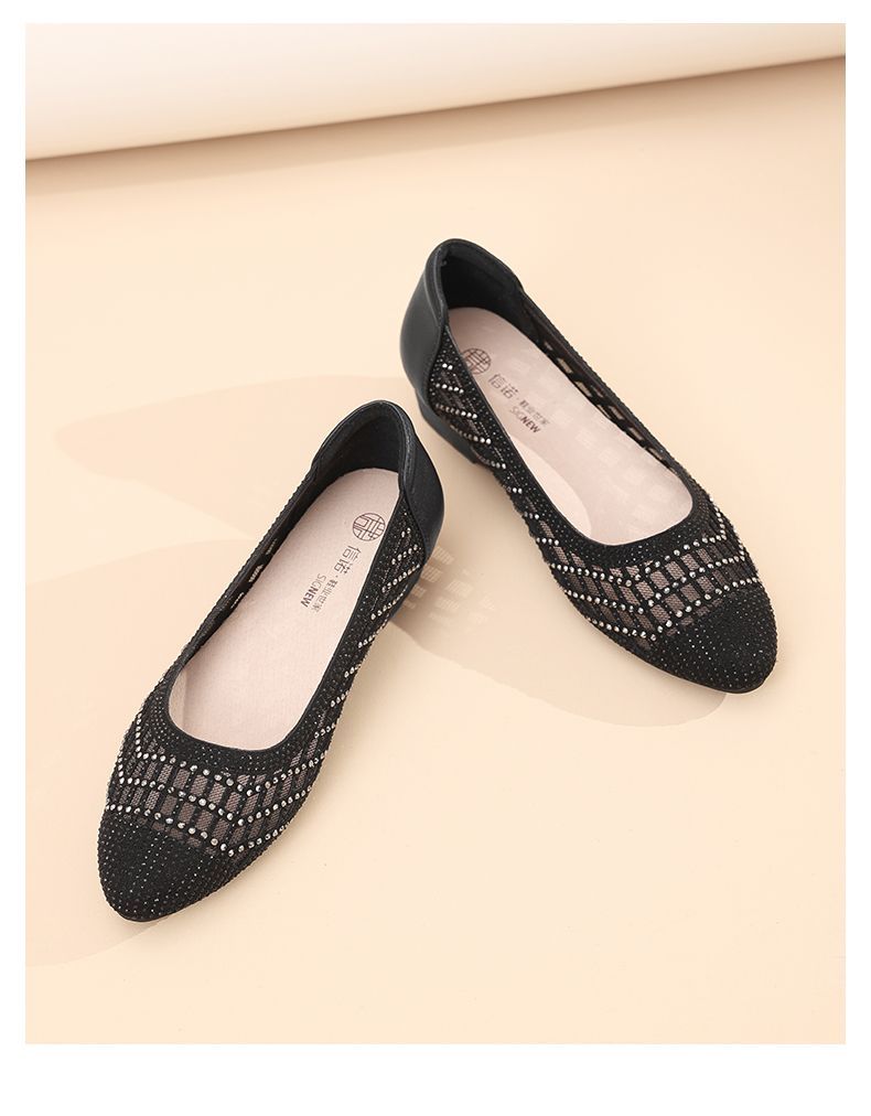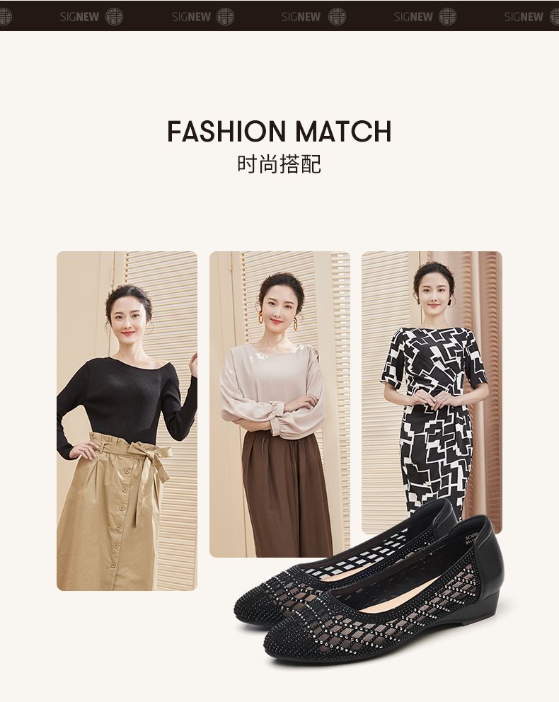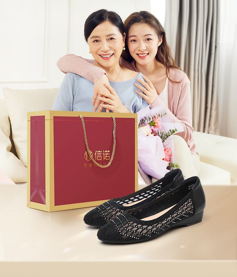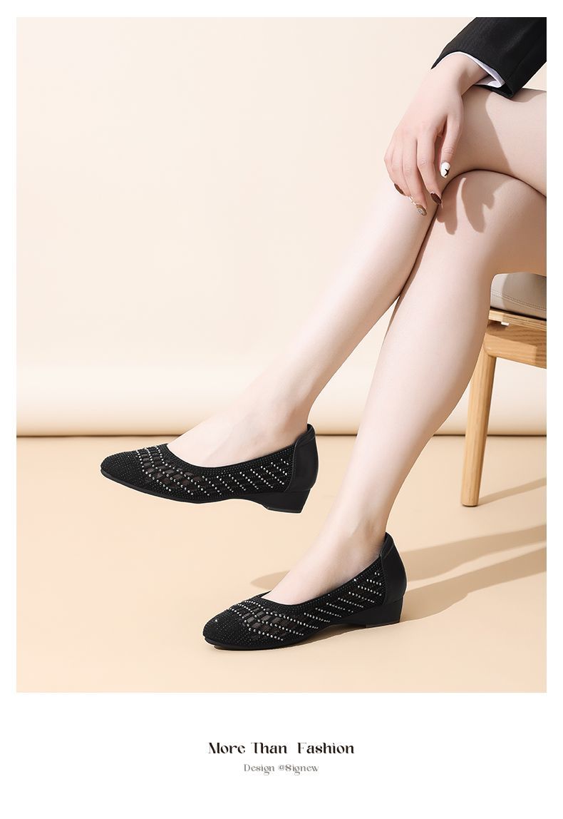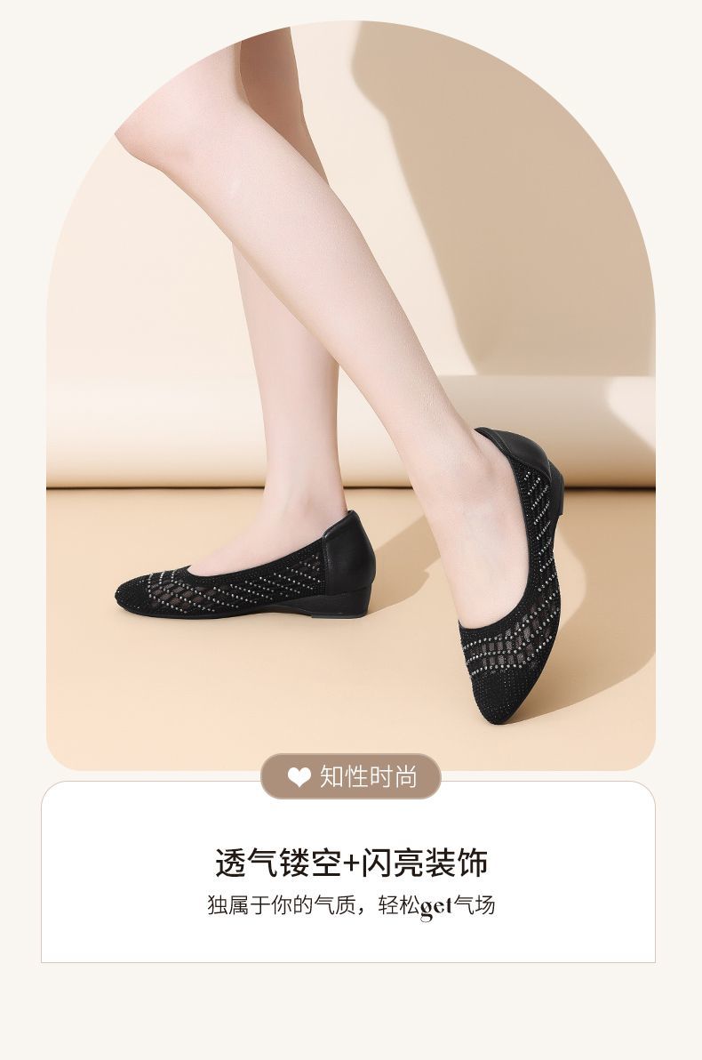 信诺真皮2025春夏新镂空女凉鞋低跟软底舒适轻便网纱浅口妈妈单鞋5C1658-7