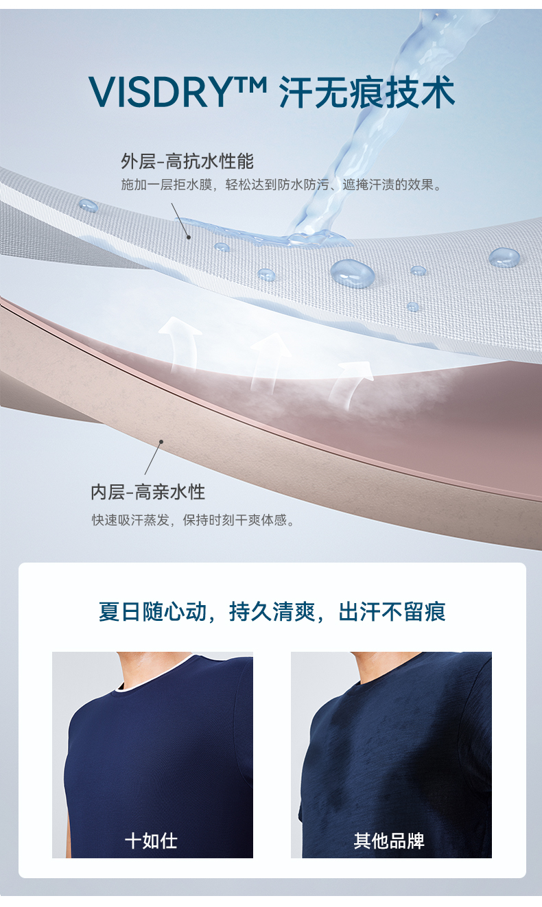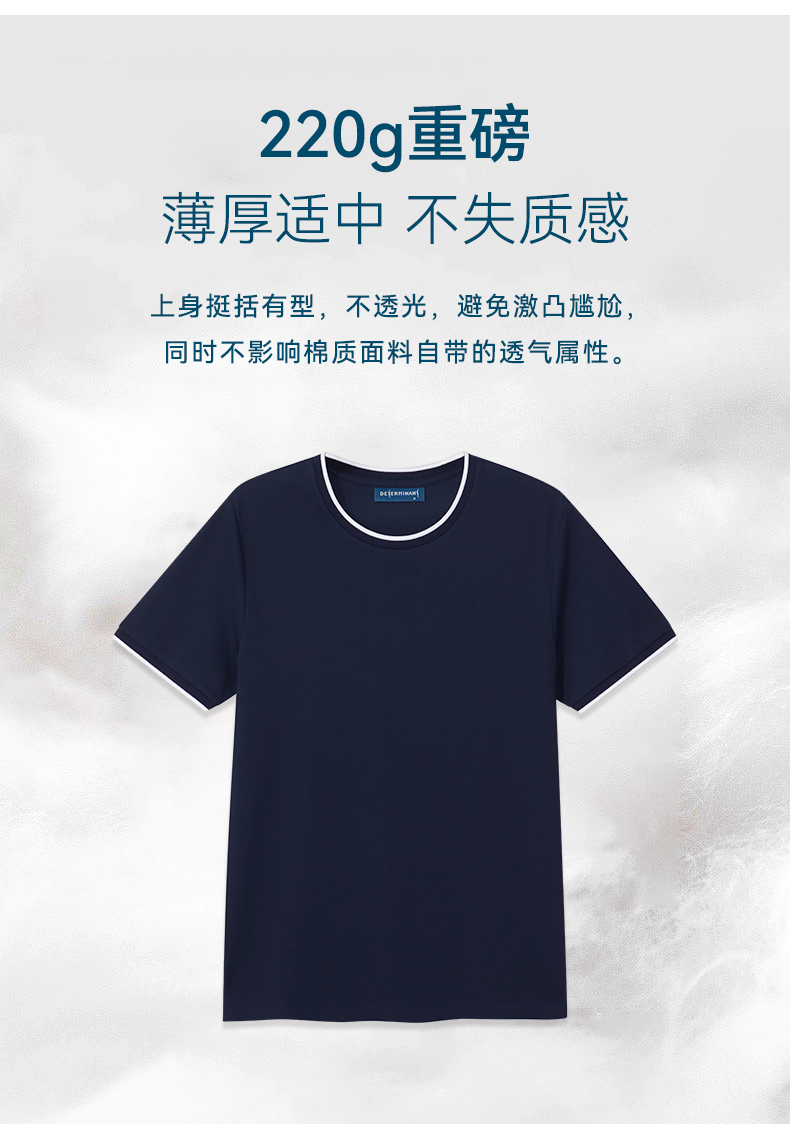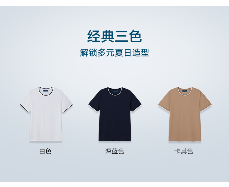 【春夏新品】十如仕厚纹理罗纹圆领纯棉速干抗菌短袖T恤T02-21