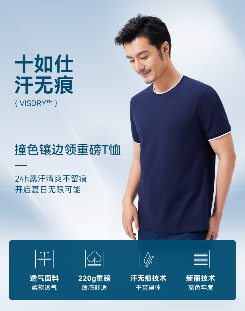 十如仕撞色领汗无痕抗污短袖T恤-T11-01