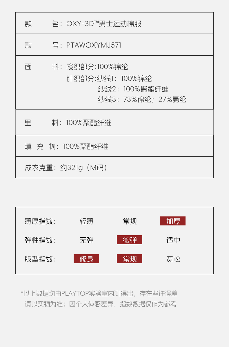 【踏春出发】PLAYTOP轻薄3M运动棉服户外滑雪徒步登山保暖抗湿冷男女修身外套(tbzg)