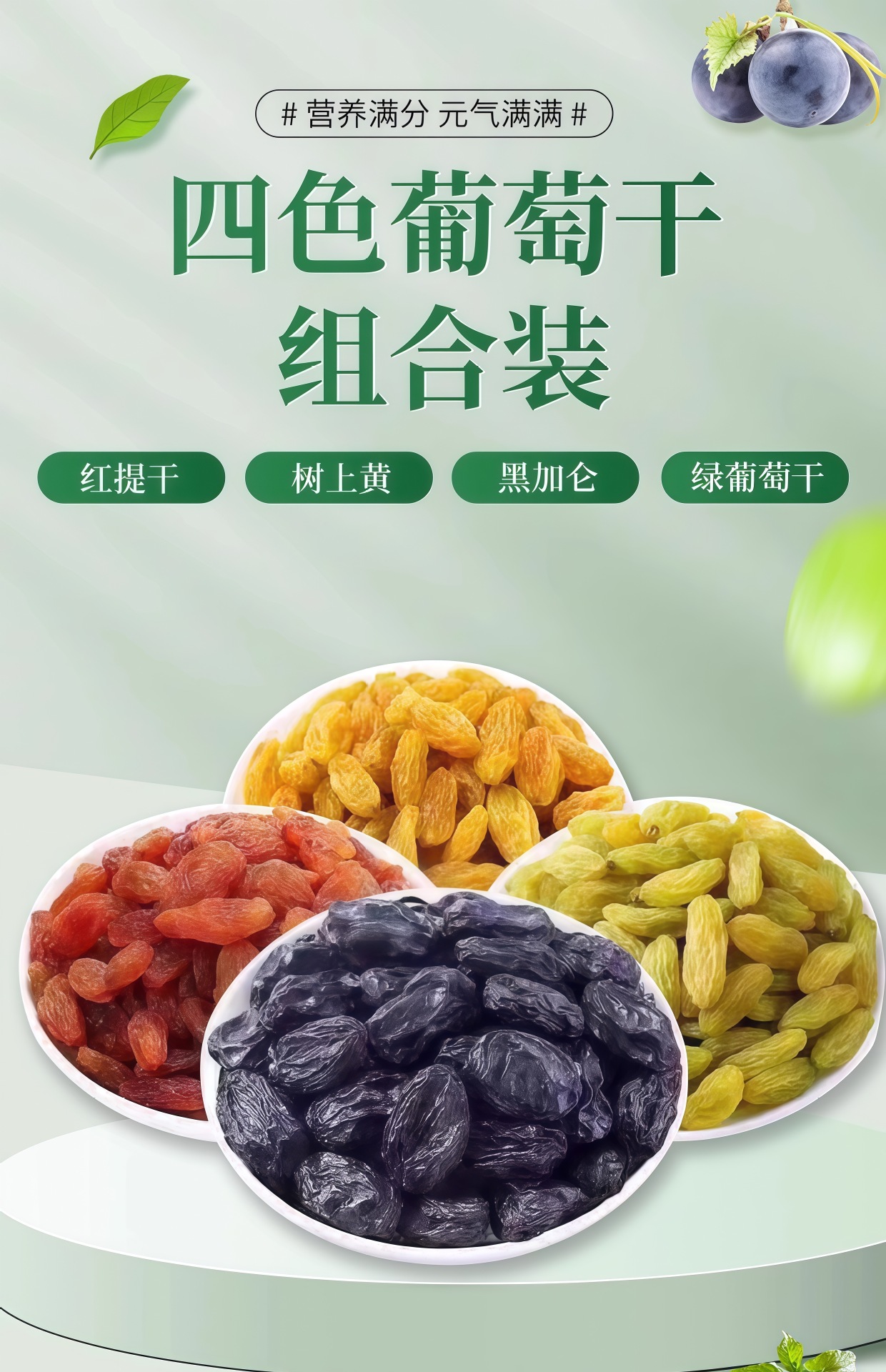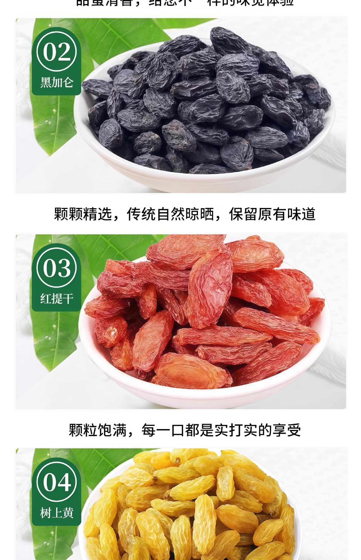 新疆四色葡萄干吐鲁番大颗粒无核提子干黑加仑零食干果果干蜜饯