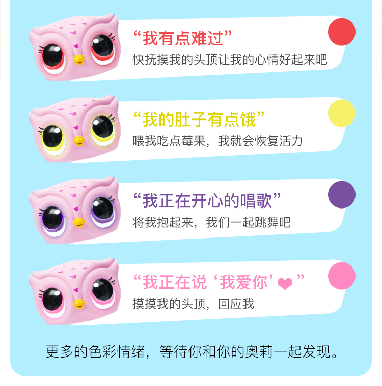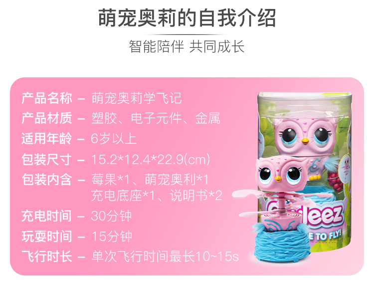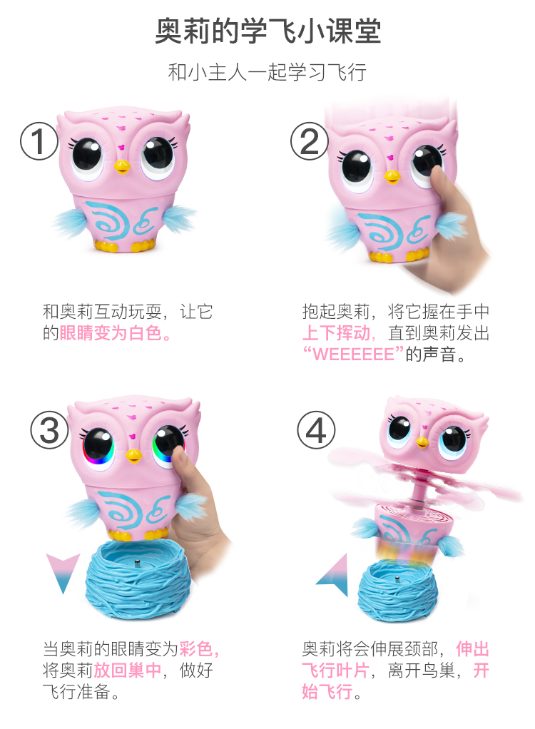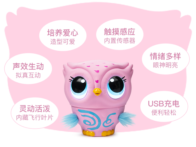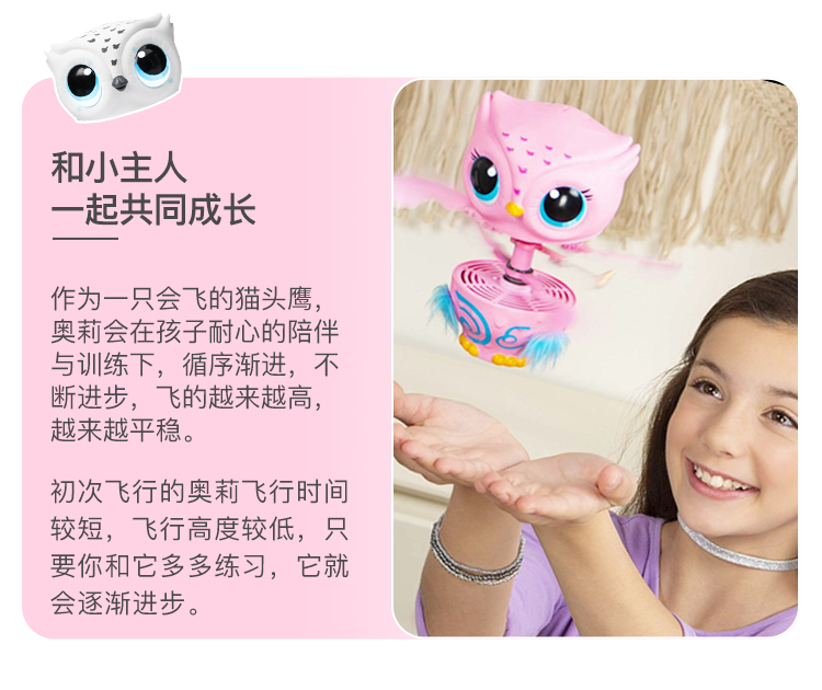 斯平马斯特Spin Master 萌宠奥莉学飞行记电动儿童玩具猫头鹰智能感应机器会唱歌