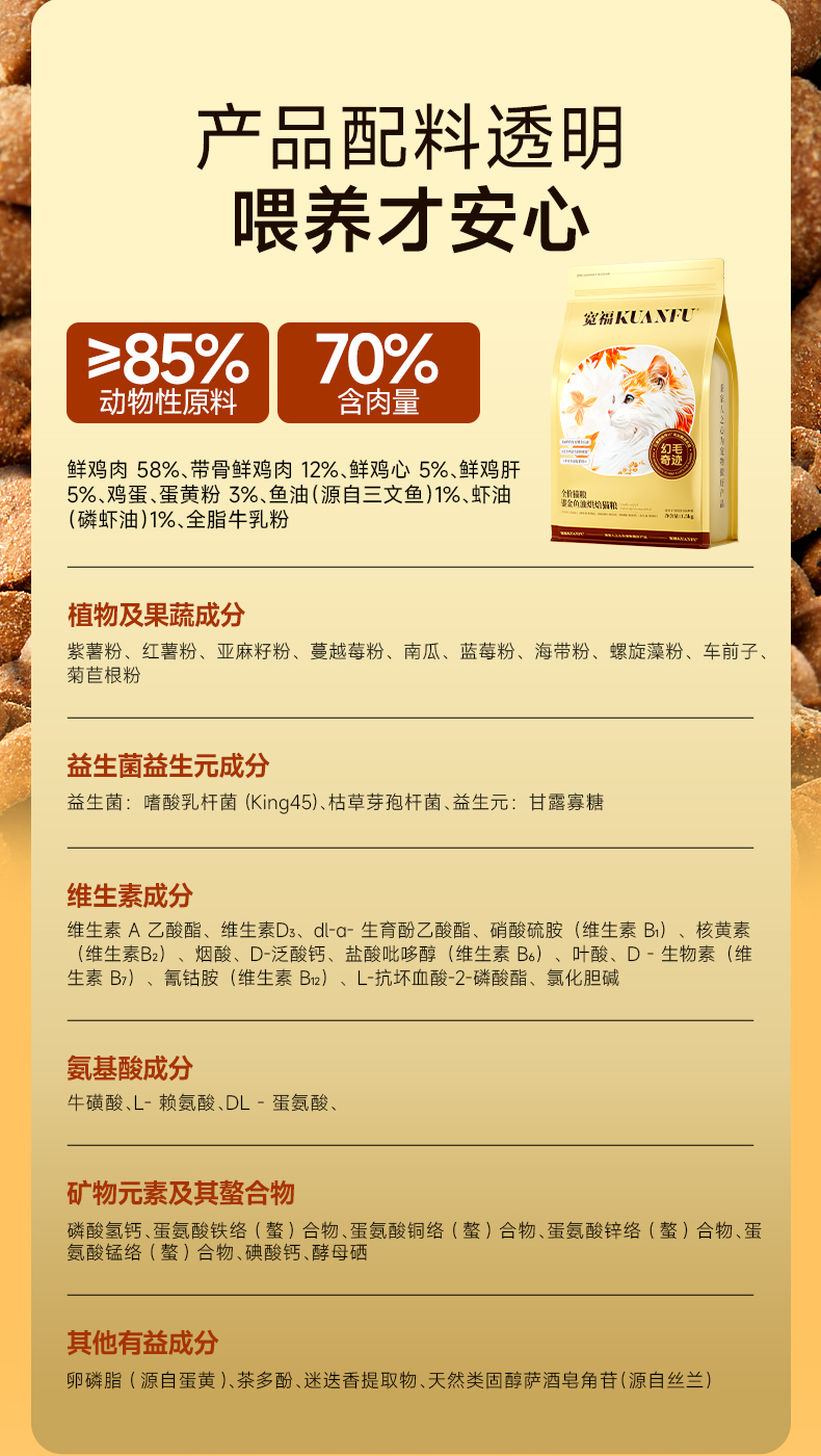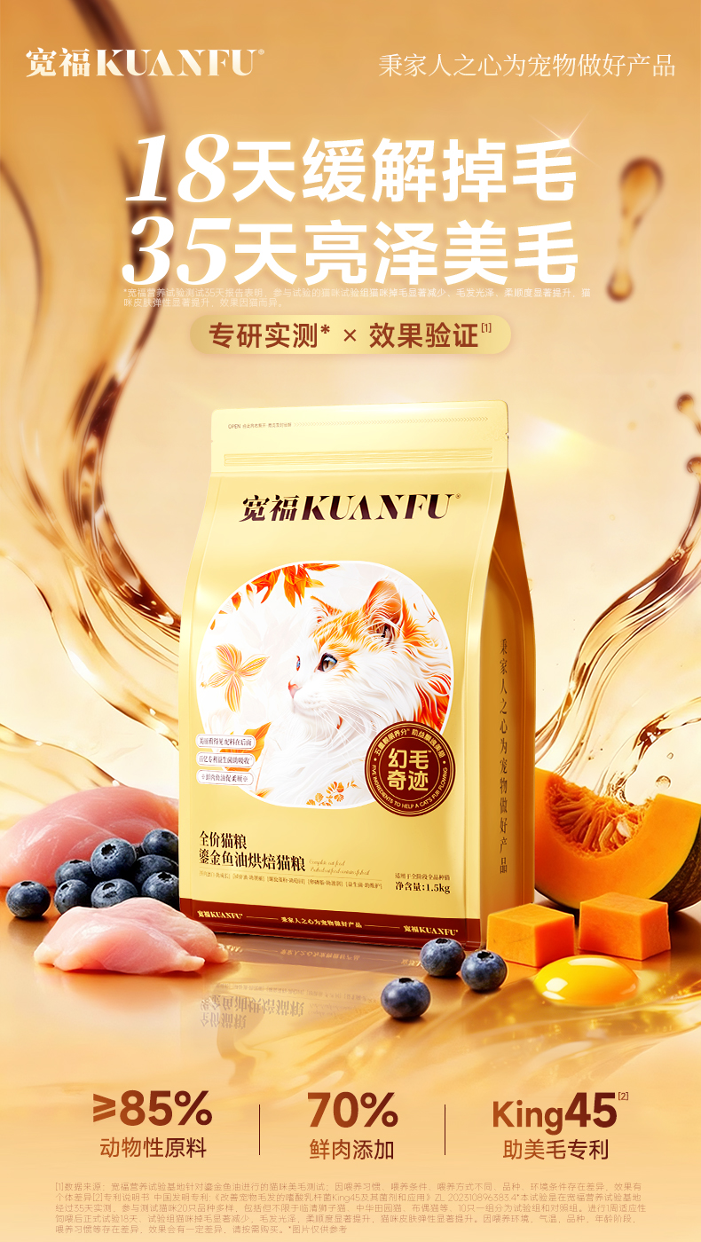 【新品】鎏金鱼油烘焙猫粮 70%高鲜肉 90℃低温烘焙 实测35天助美毛 King45益生菌专利助美毛 双重珍贵油脂 滋养毛发毛囊