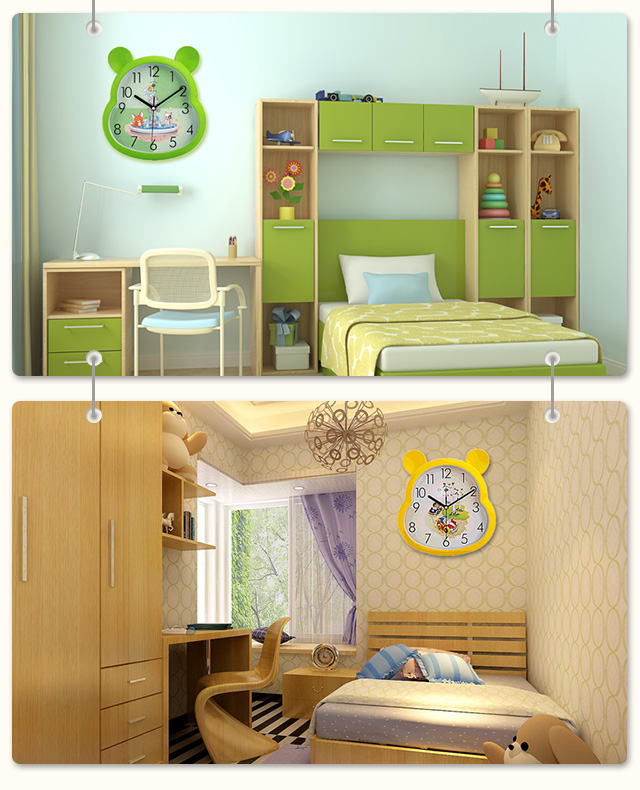 北极星(POLARIS)挂钟 客厅创意儿童卡通石英钟表小熊造型静音时钟可爱卧室挂表12英寸 2679绿