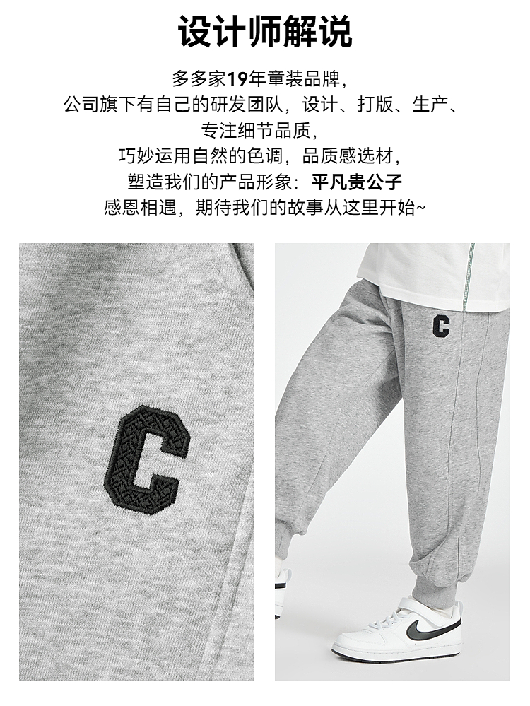 【团购价49.9】多多家男童运动裤卫裤2025新款春秋季儿童中大童宽松刺绣束脚裤子10242