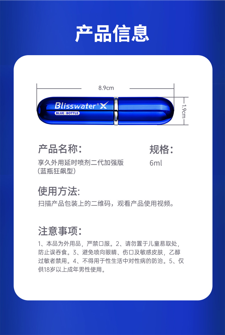 享久官方旗舰店蓝瓶狂飙型延时喷剂男用延迟喷雾持久喷剂成人用品