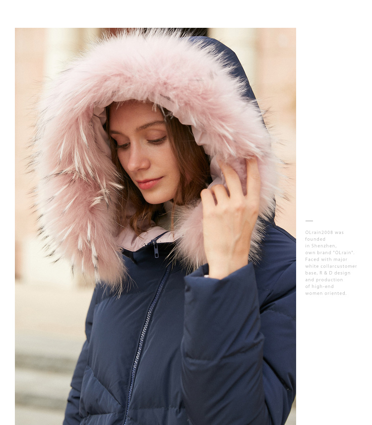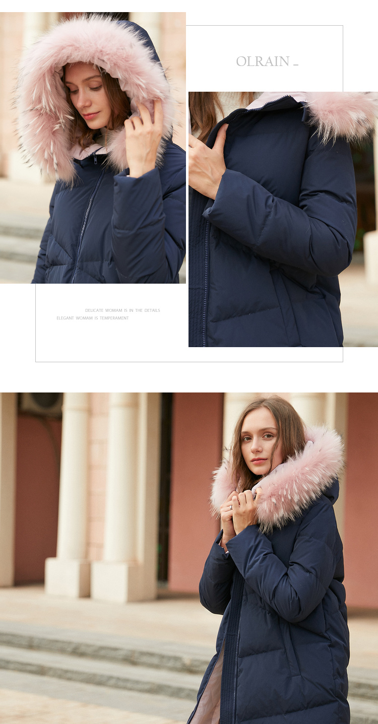 欧芮儿冬女2019新款百搭大毛领羽绒服女中长款保暖加厚外套