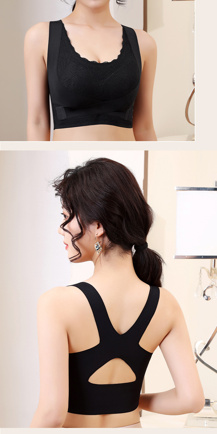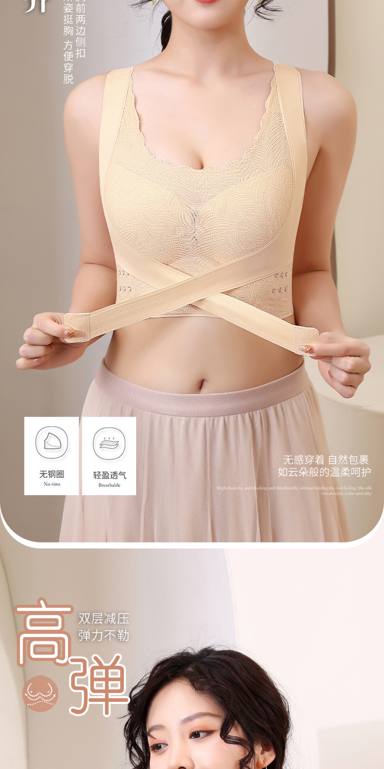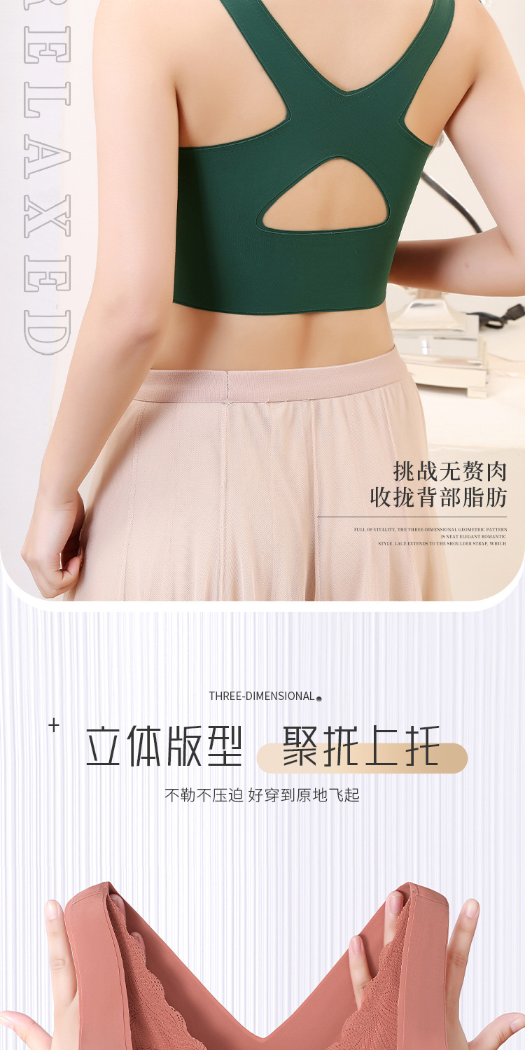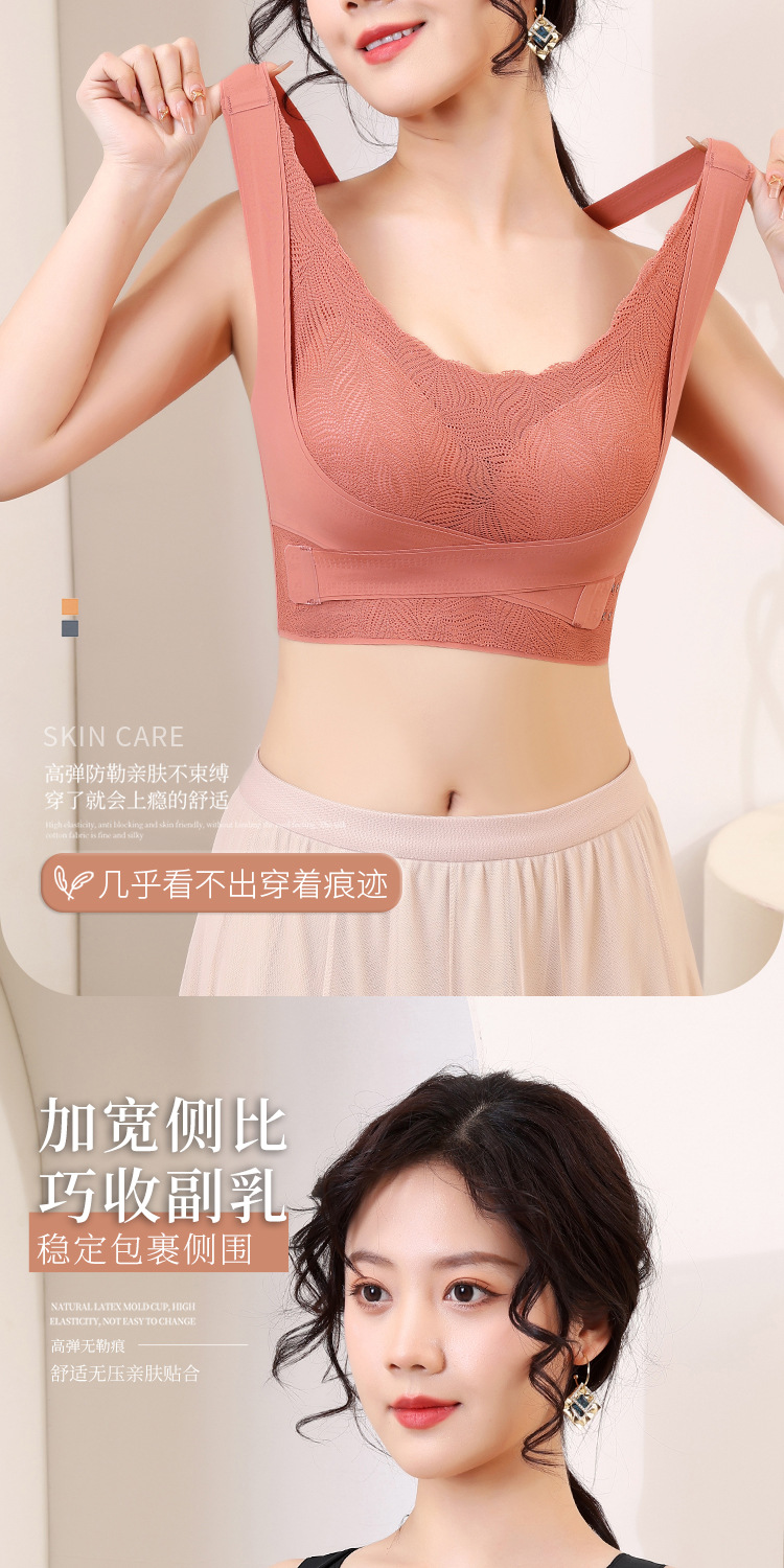 任选2件装【性感交叉美背蕾丝内衣】侧扣无钢圈聚拢收副乳 无痕运动防震文胸