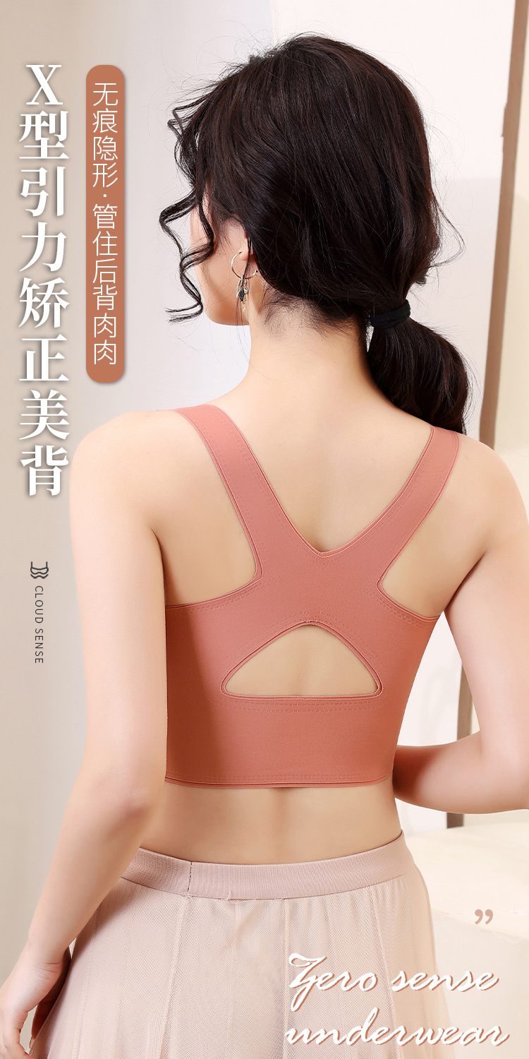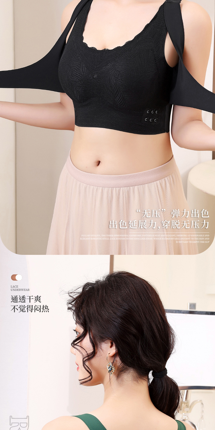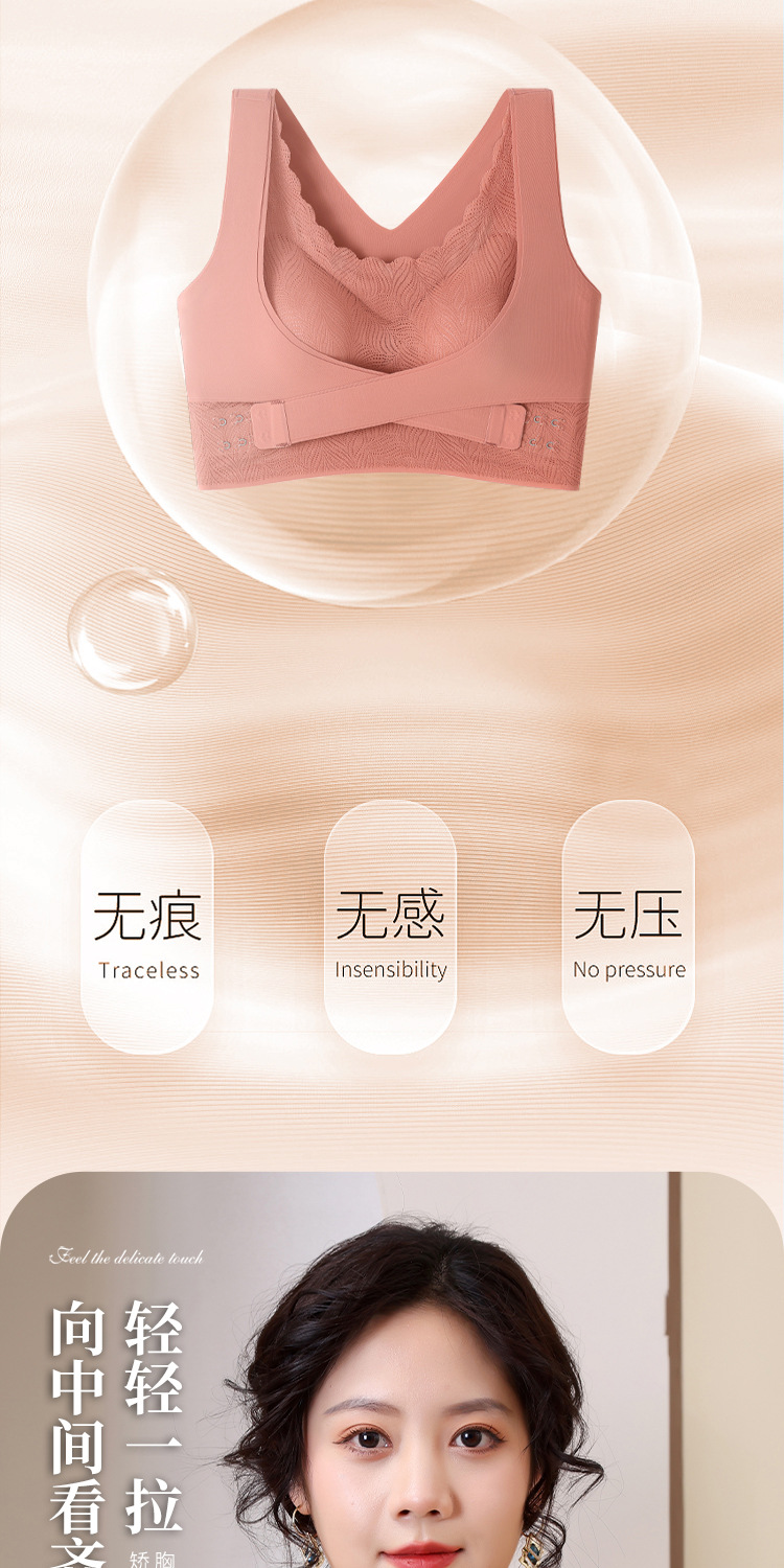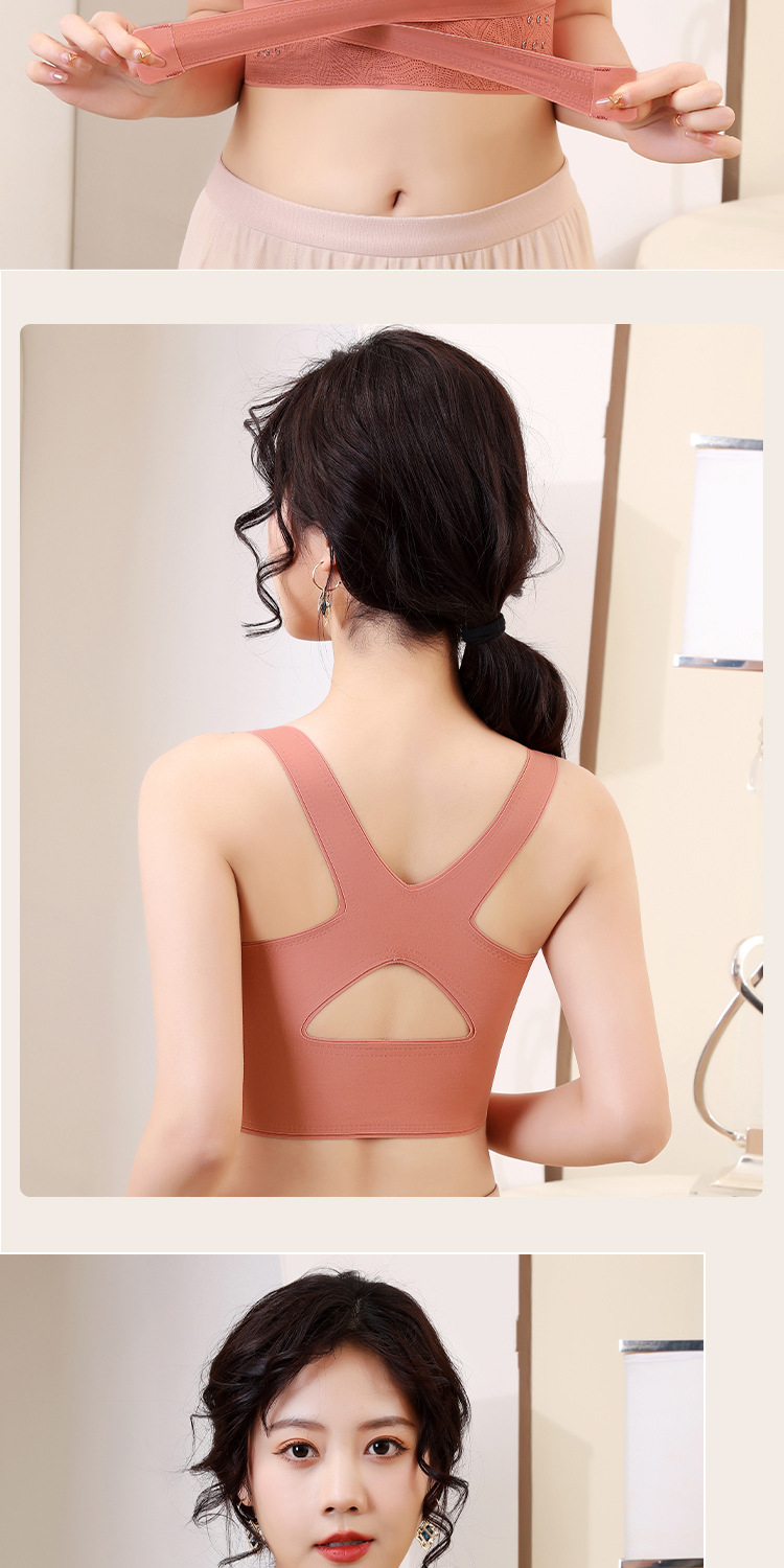 任选2件装【性感交叉美背蕾丝内衣】侧扣无钢圈聚拢收副乳 无痕运动防震文胸