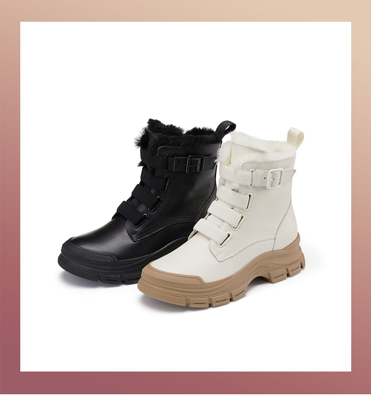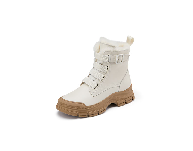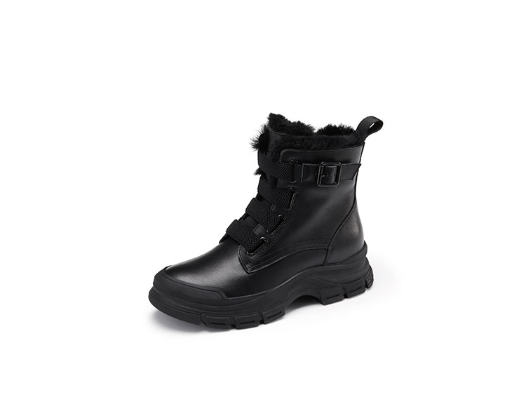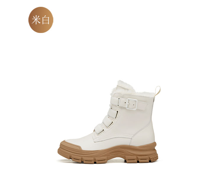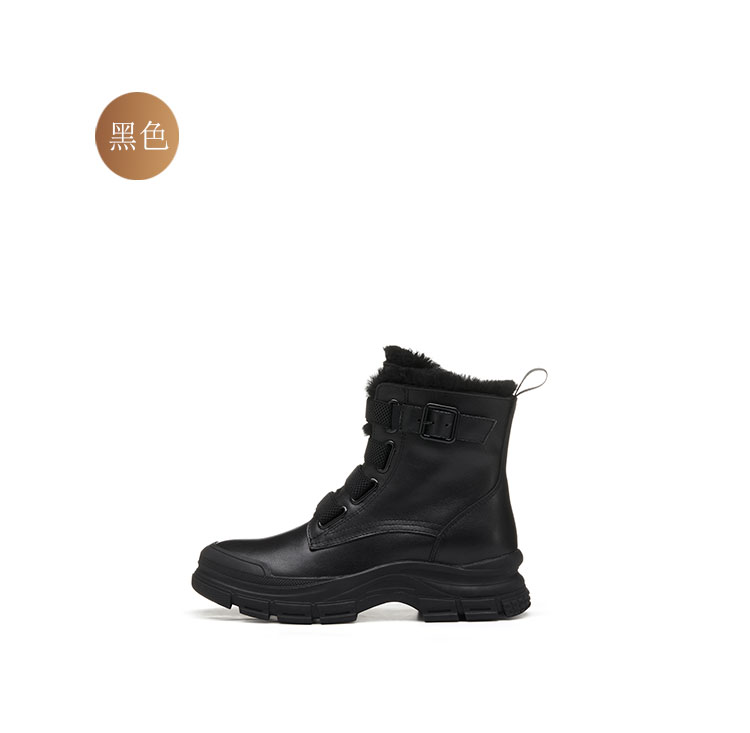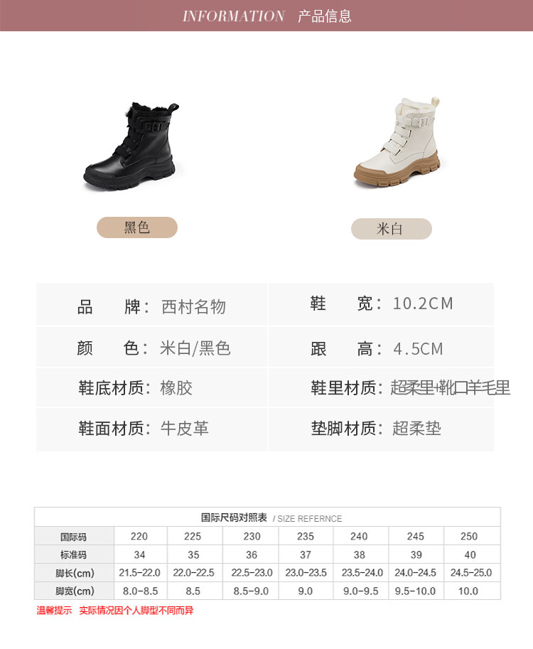 西村名物2021冬季新款女真皮鞋英伦风短靴低跟单靴中筒靴子T21DS45111