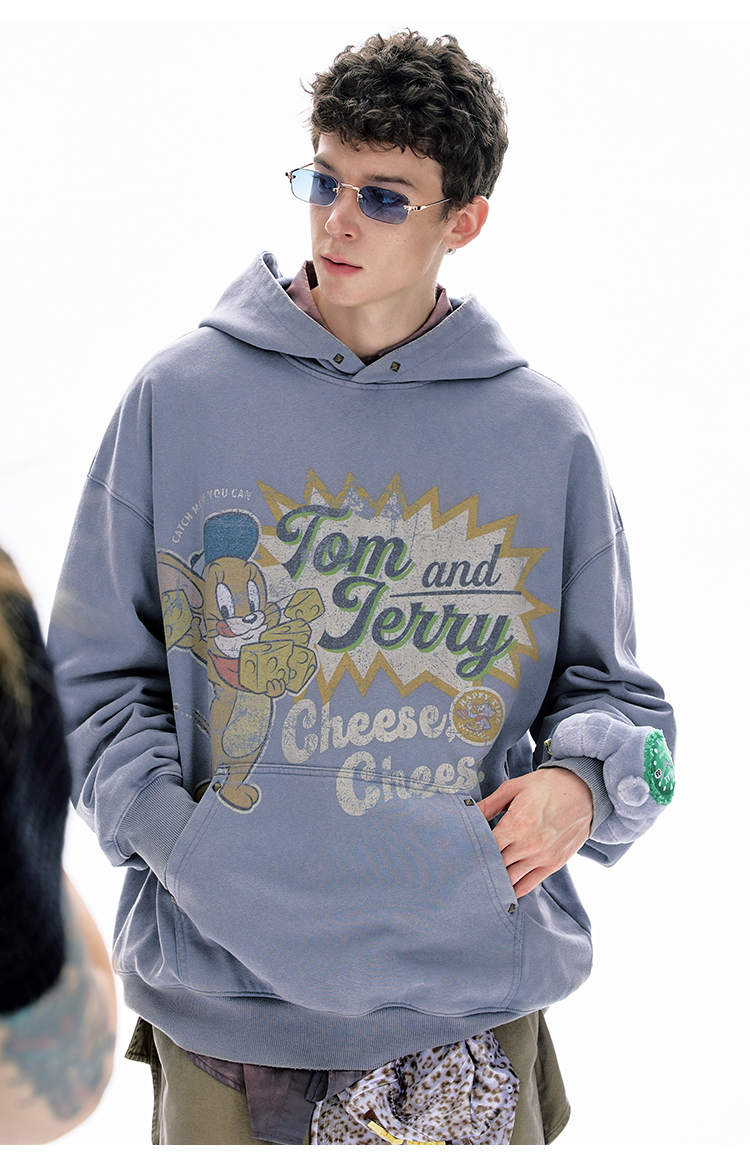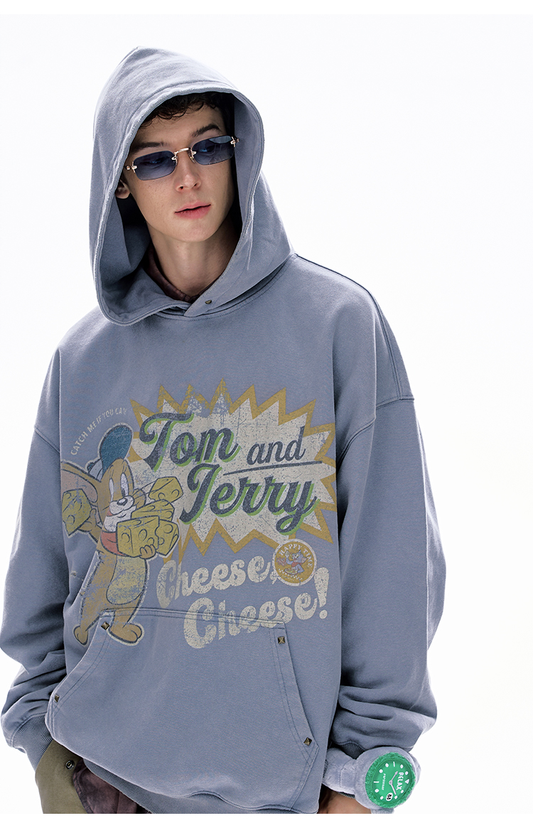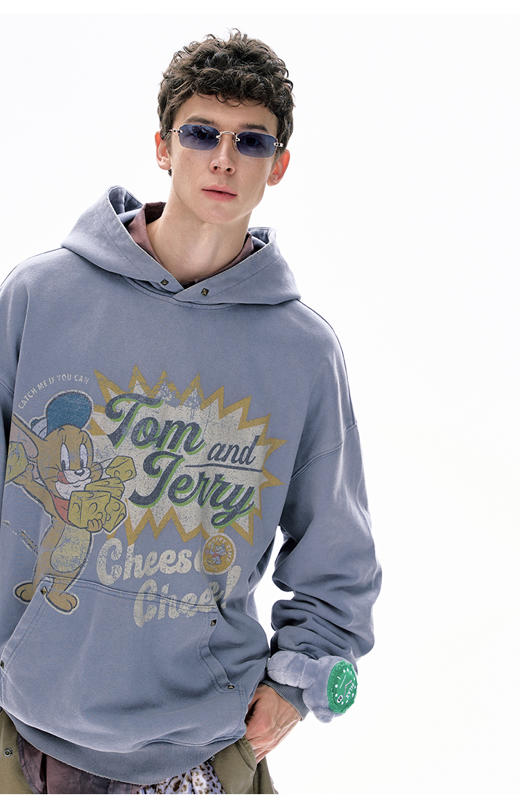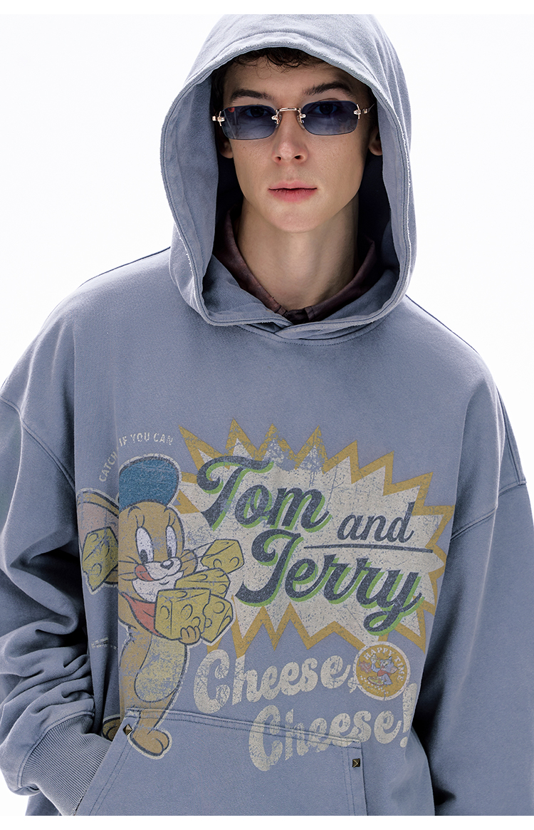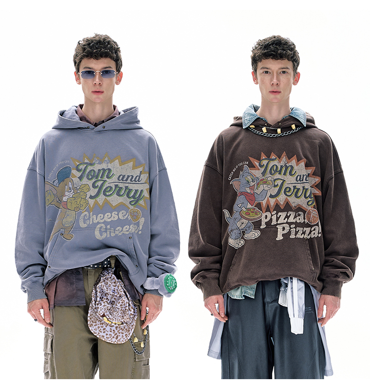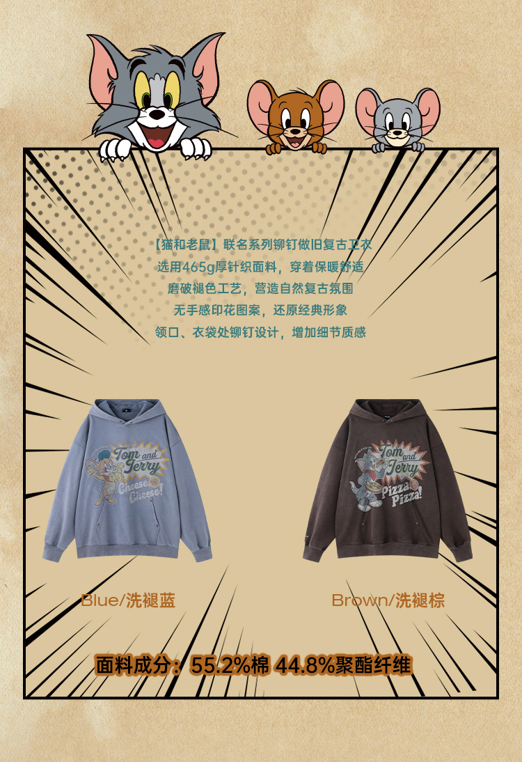 【猫和老鼠联名】BJHG不计后果连帽卫衣男秋季美式做旧情侣上衣女
