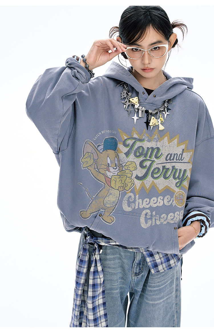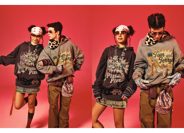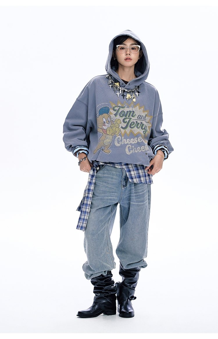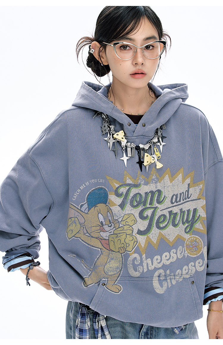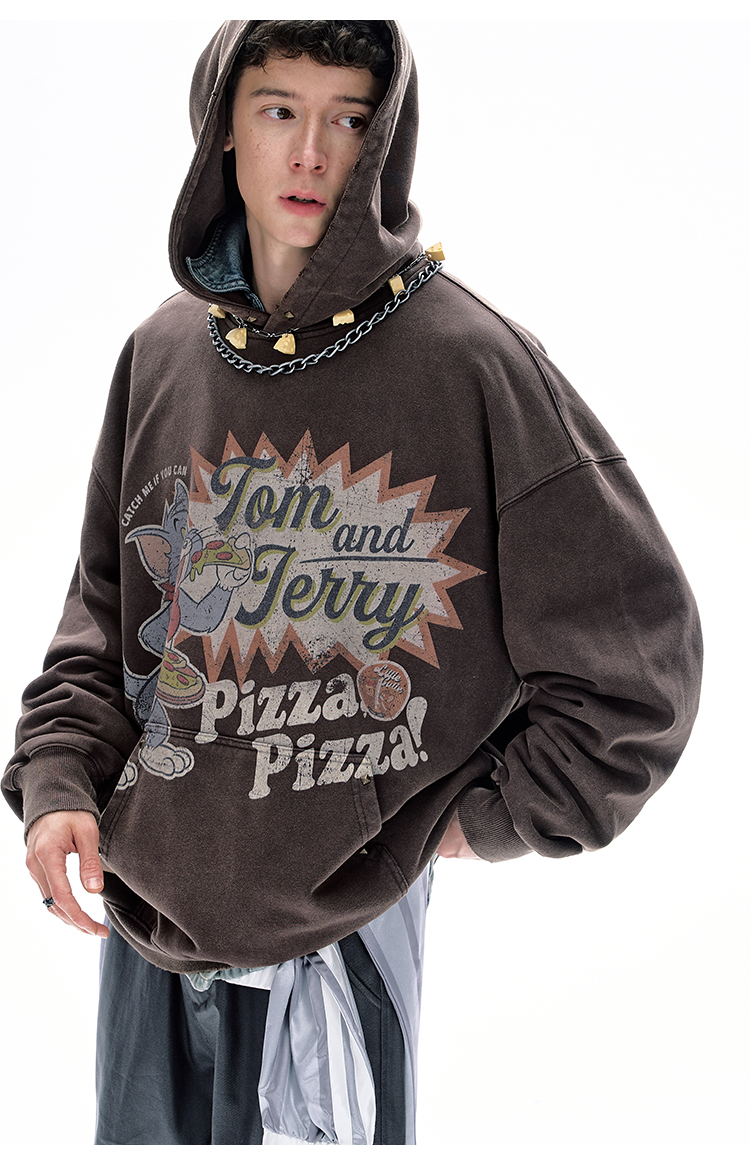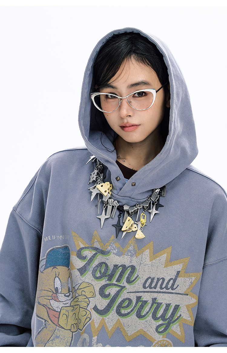 【猫和老鼠联名】BJHG不计后果连帽卫衣男秋季美式做旧情侣上衣女