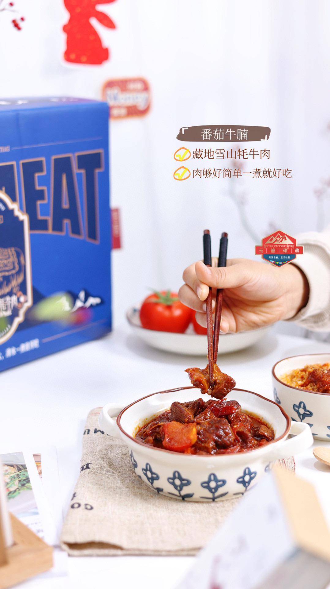 我们选3.5~4岁牦牛,肉质佳口感刚刚好、不柴。牦牛生活在寒冷缺氧的高原,它血液中要有足够的铁元素才能吸收到稀薄的氧气,因此牦牛肉中的铁元素能促进血红细胞再生,提高人体的抵抗力