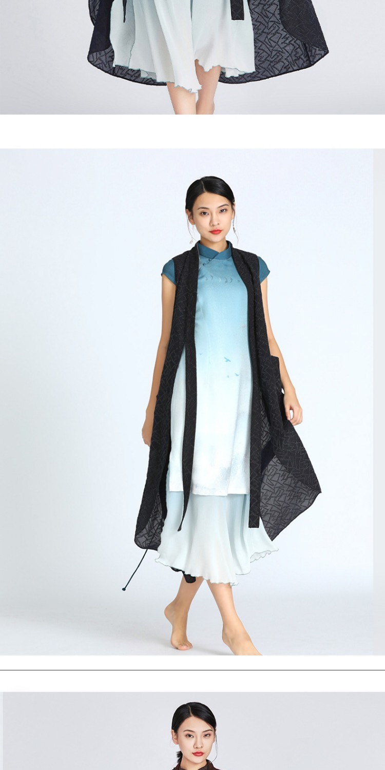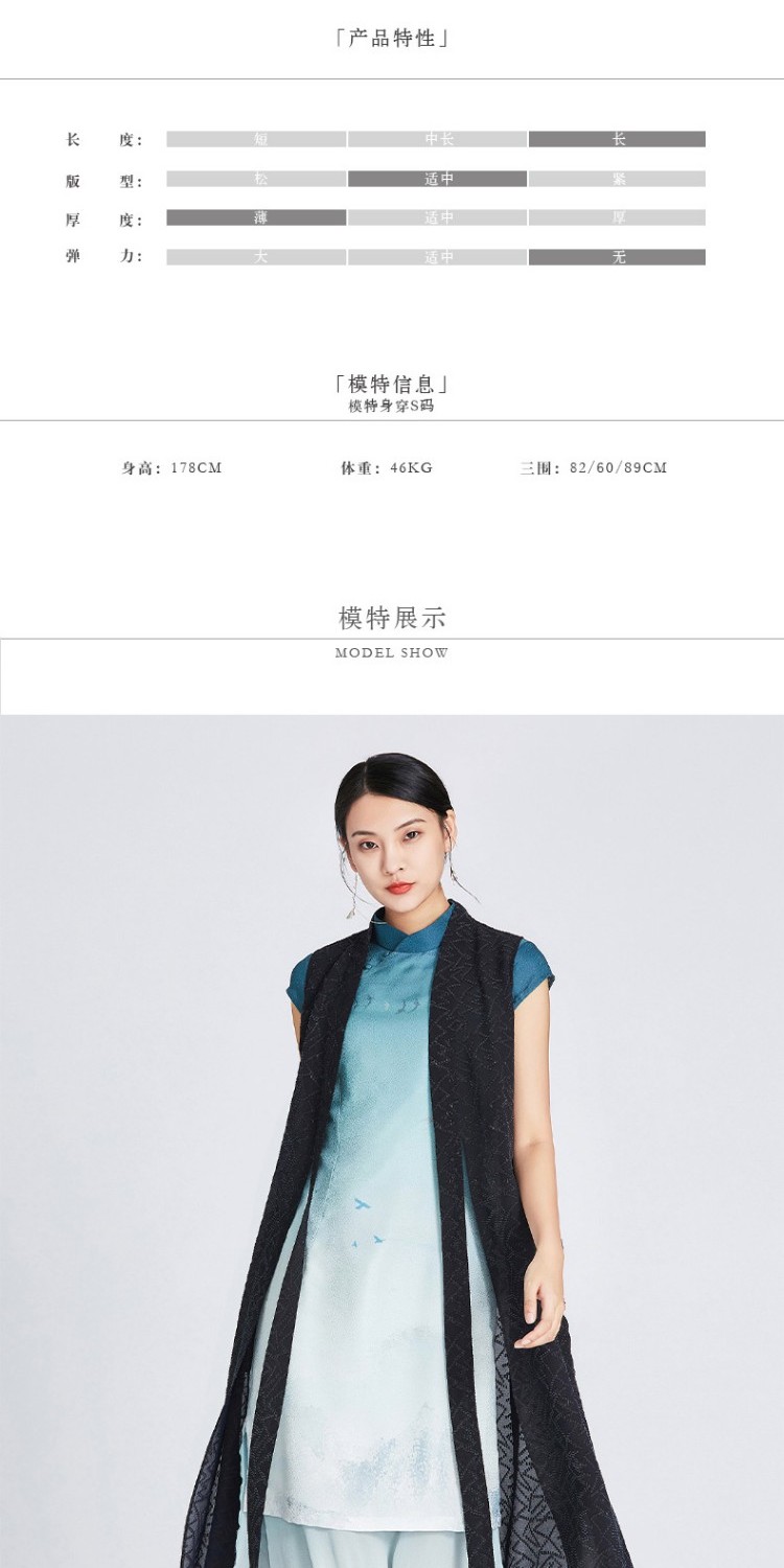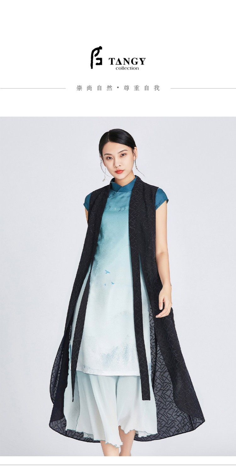 TANGY Collection/天意精品夏季新品雪傍系列提花莨弧形摆长马夹