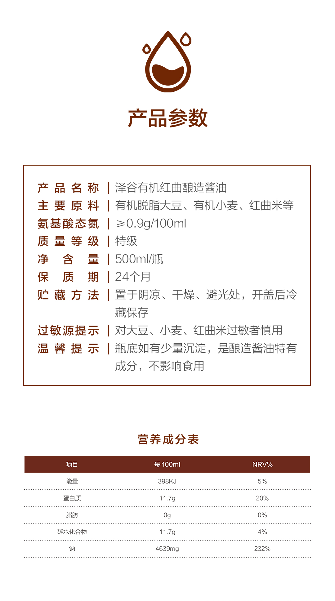 0593【国企严选,山海食材】泽谷有机红曲酿造酱油