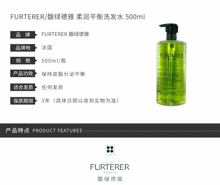 【法国直邮】FURTERER/馥绿德雅 柔润洗发水 500ML