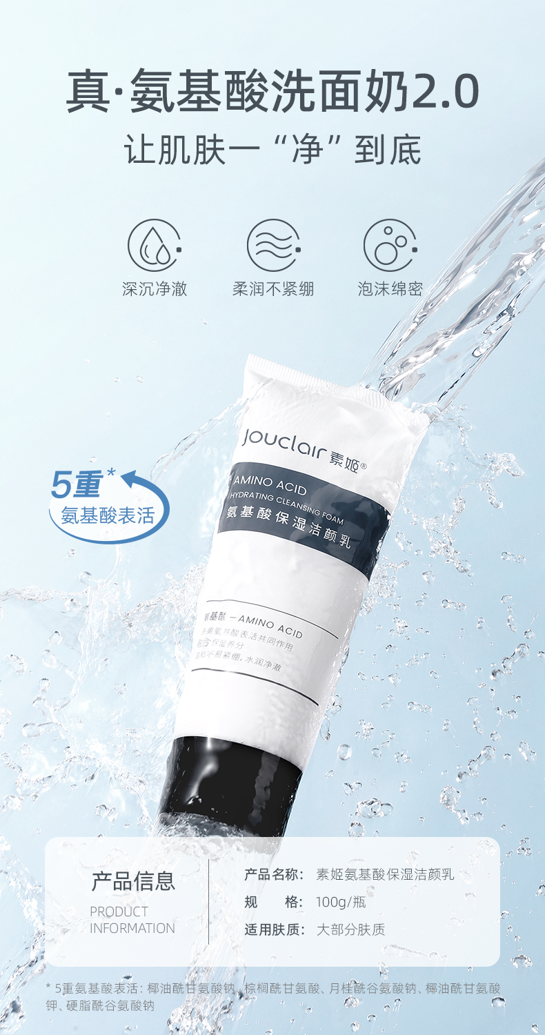 【正品直售】素姬氨基酸保湿洁颜乳温和洁面补水保湿氨基酸洗面奶男女通用