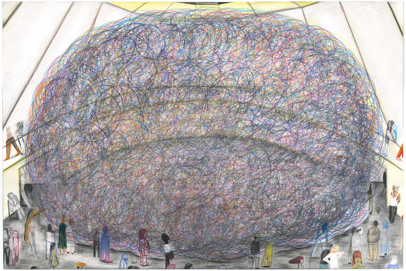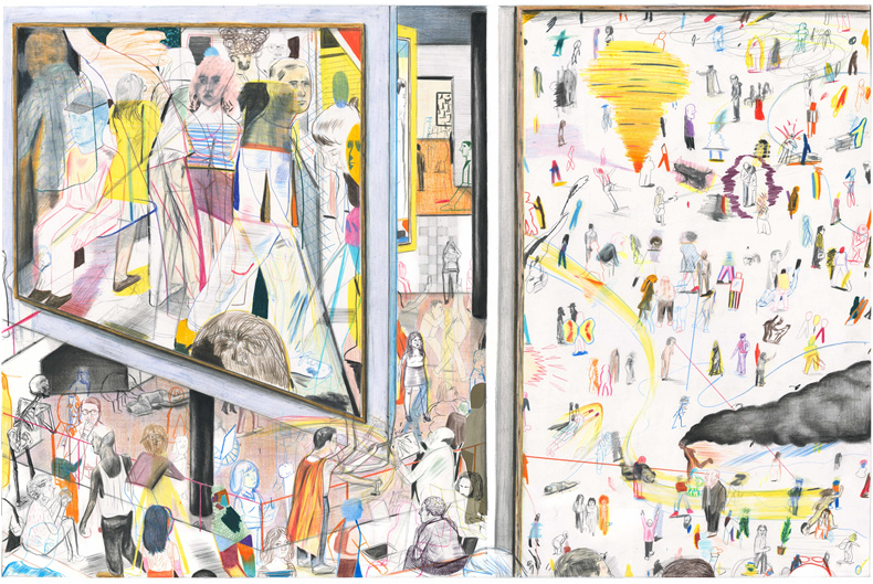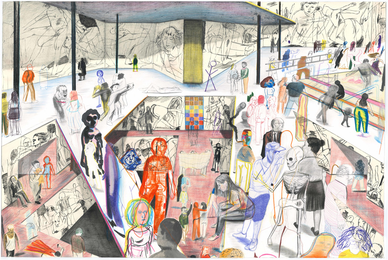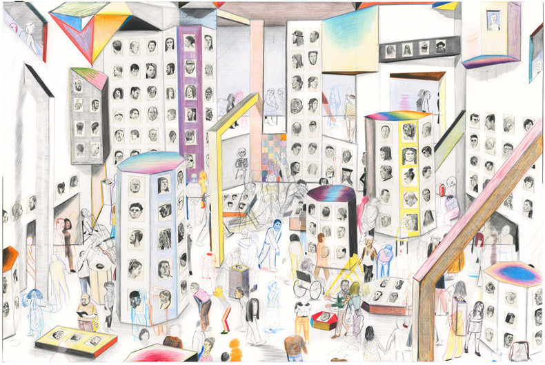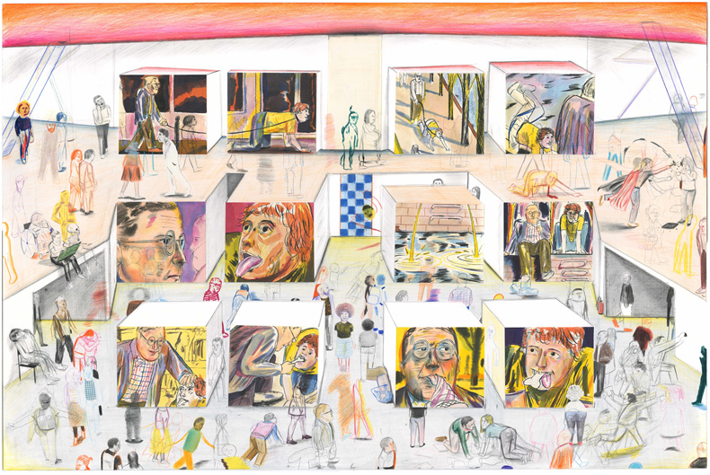 扬-凯比(Yann Kebbi)在他想象中的博物馆的墙壁上,带着一种快乐的自大狂,展示了他近年来创作的所有作品(绘画、蚀刻版画、拼贴画、照片......),参观者就是我们,我们和我们自己的故事。
