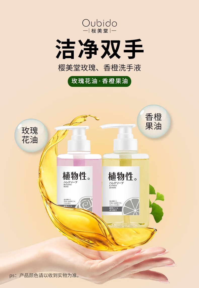 Oubido樱美堂玫瑰花油洗手液420ml/112262 玫瑰花油清洁双手