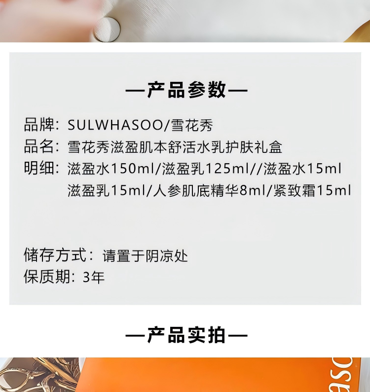 【跨境】Sulwhasoo雪花秀滋盈滋盈2礼盒版(150ml+125ml+15ml+15ml+8ml+5ml)