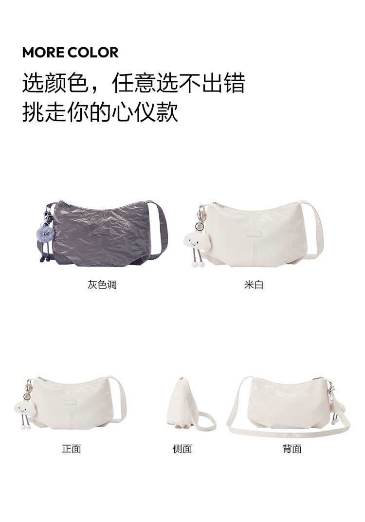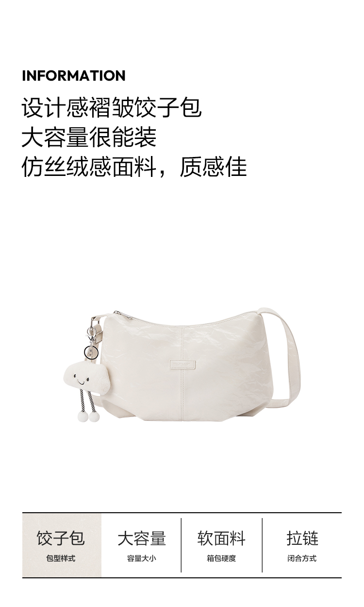 森马包包斜挎包2024新款仿丝绒大容量单肩包设计感褶皱饺子包流行