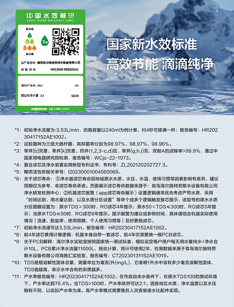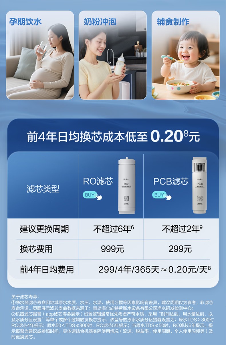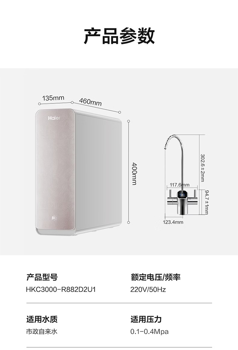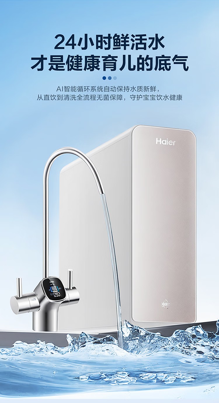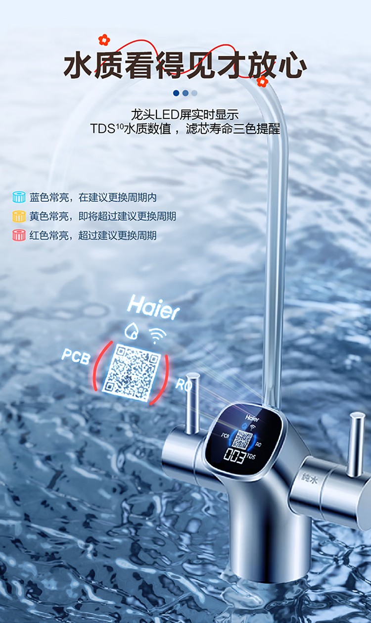 海尔(Haier)家用净水器鲜活水Pro智慧双出水净水机厨下直饮水机出水可视化TDS净饮机882 小红花1200G HKC3000-R882D2U1