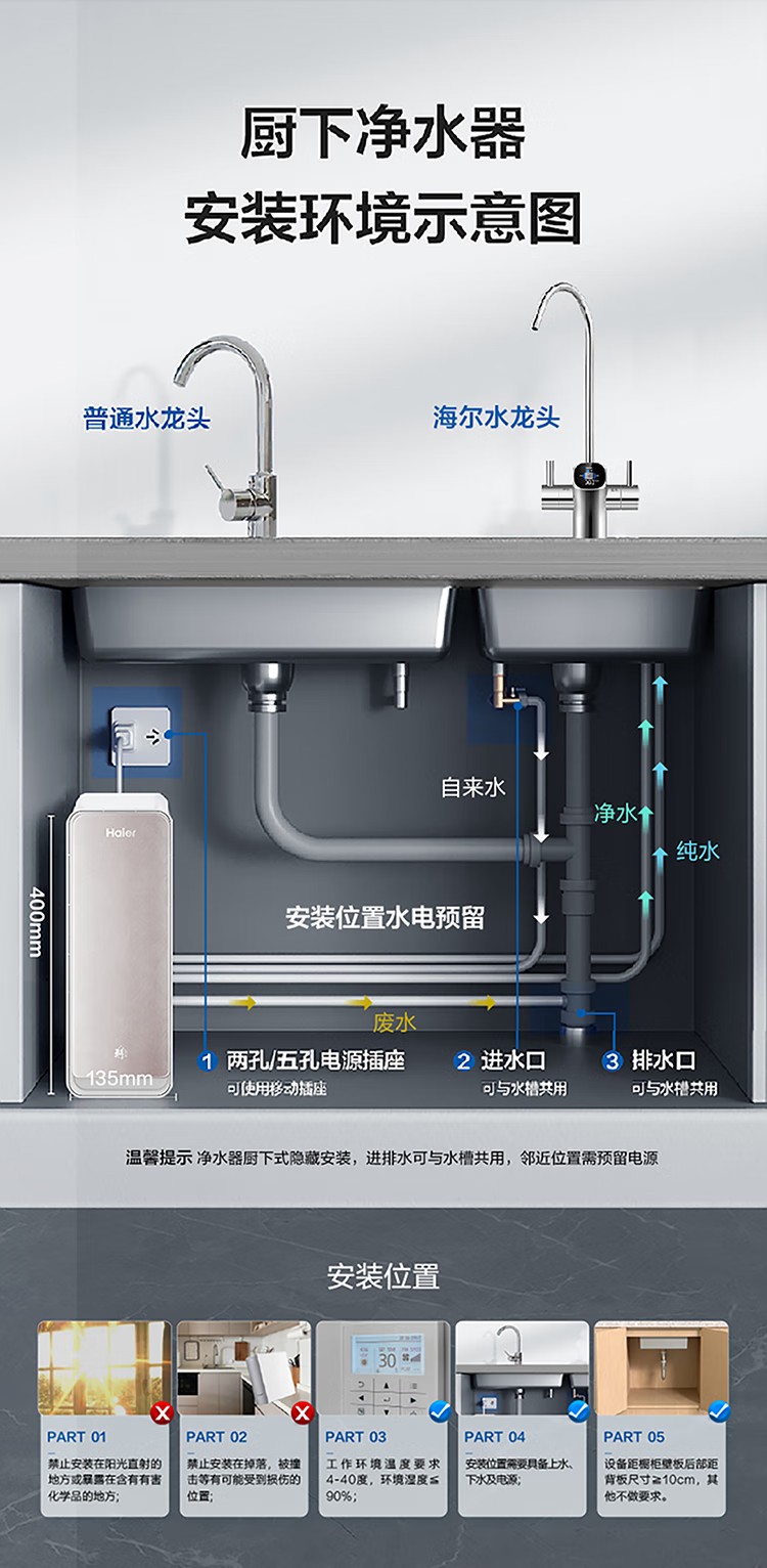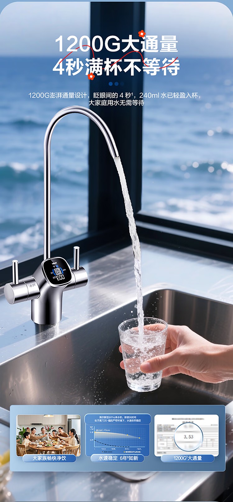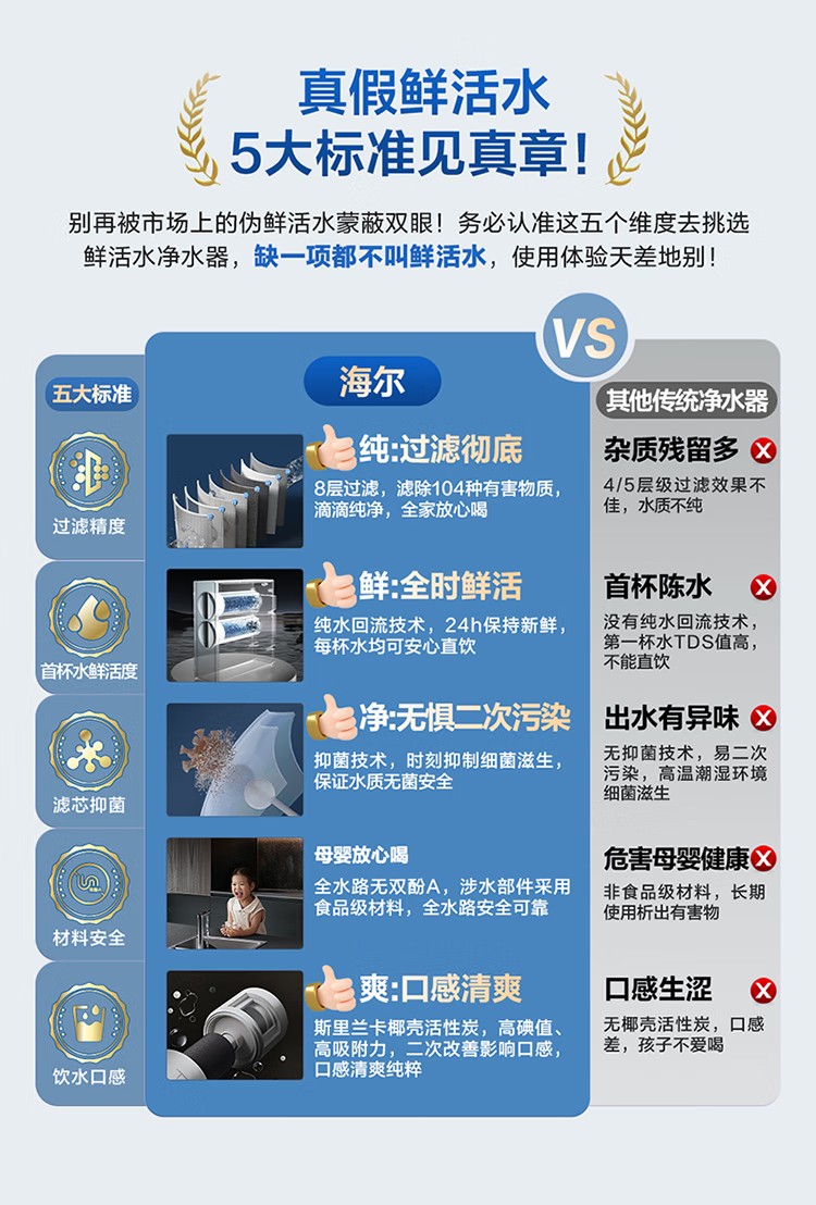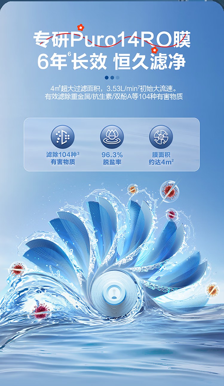 海尔(Haier)家用净水器鲜活水Pro智慧双出水净水机厨下直饮水机出水可视化TDS净饮机882 小红花1200G HKC3000-R882D2U1
